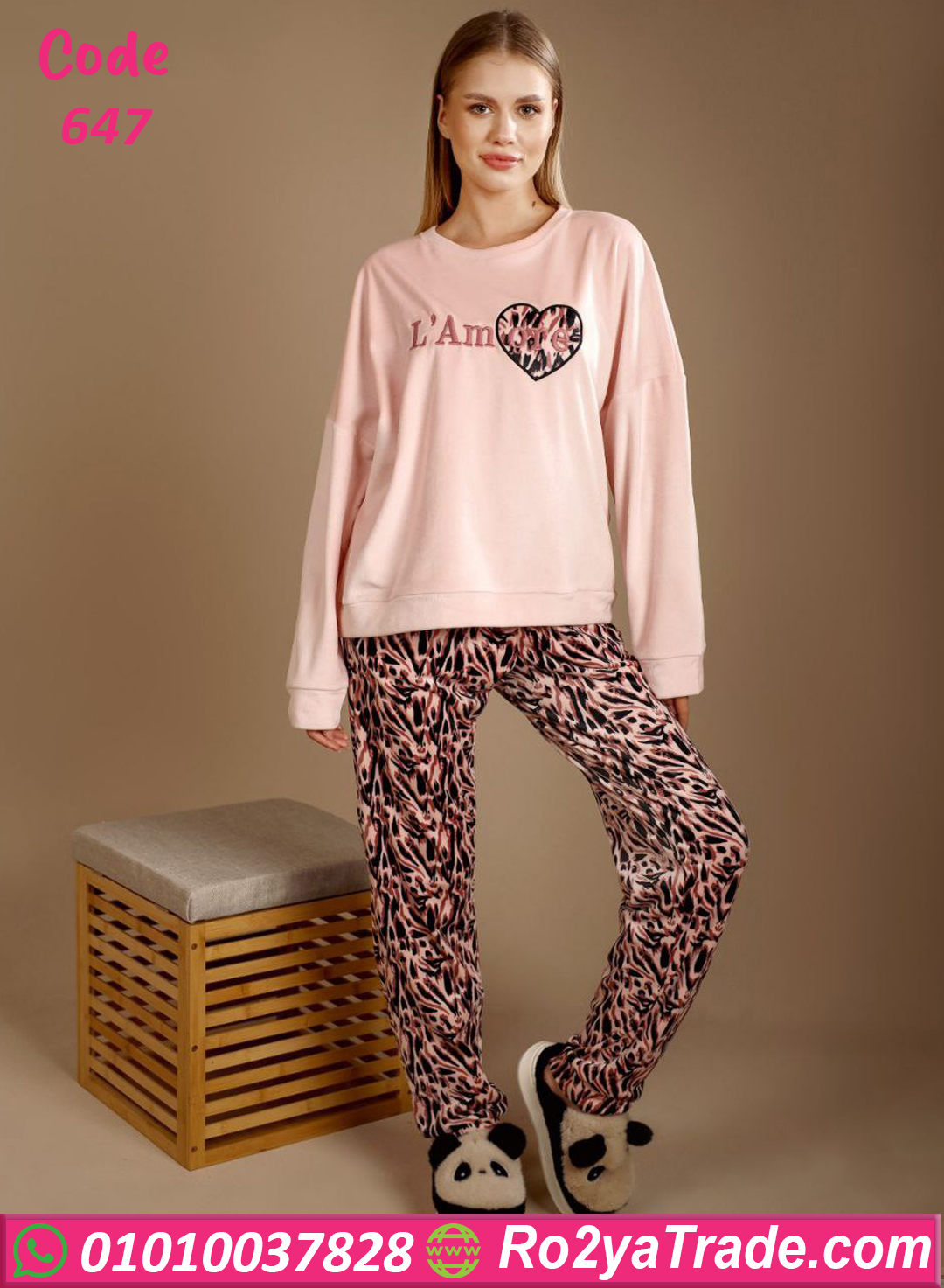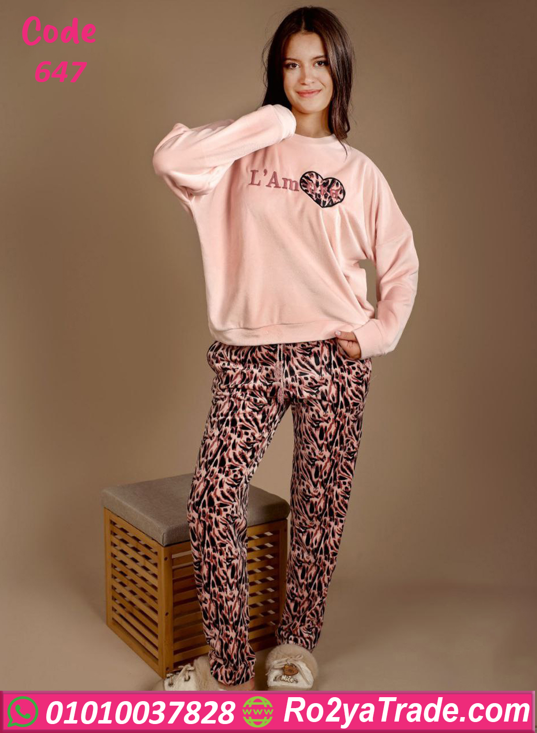 بيجامة دافئة وناعمة ومريحة في اللبس البلوزة خفيفة وطرية على الجسم بتطريز قلب مميز يزود جمال الموديل البنطلون خامة فرو ما بتكلكعش وبتحافظ على شكلها بعد الغسيل ستايل عملي وشيك يناسب كل الأذواق 💖 الموديل مناسب للصبايا والسيدات وكتير مُفضل للشتا ☃️🔥