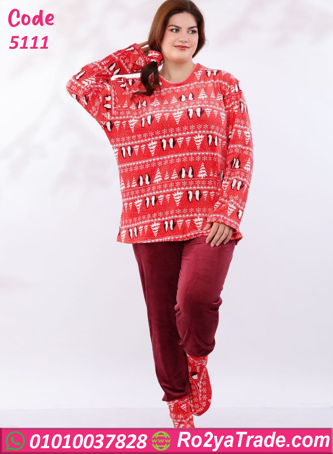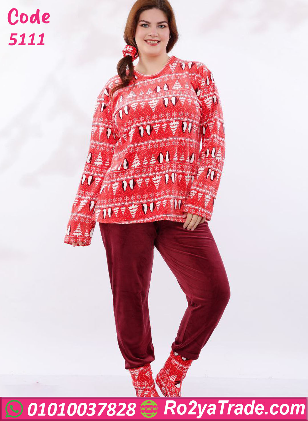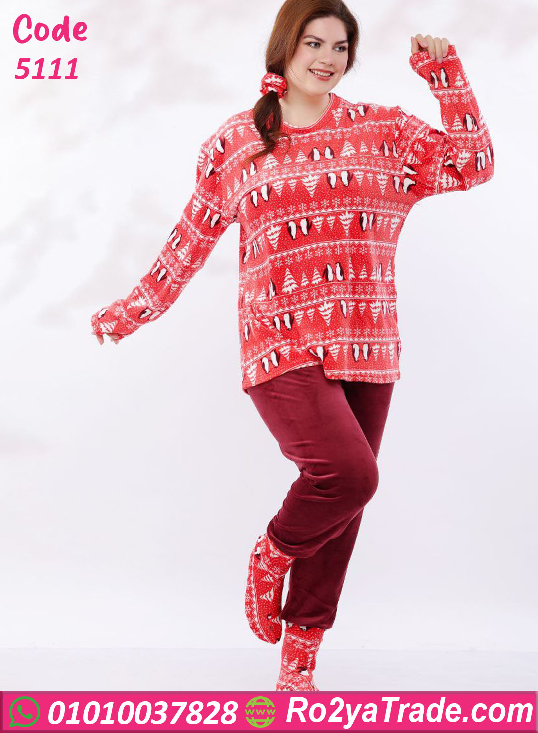بيجامة شتوي قطيفة برسومات شتوية – كود 5111
