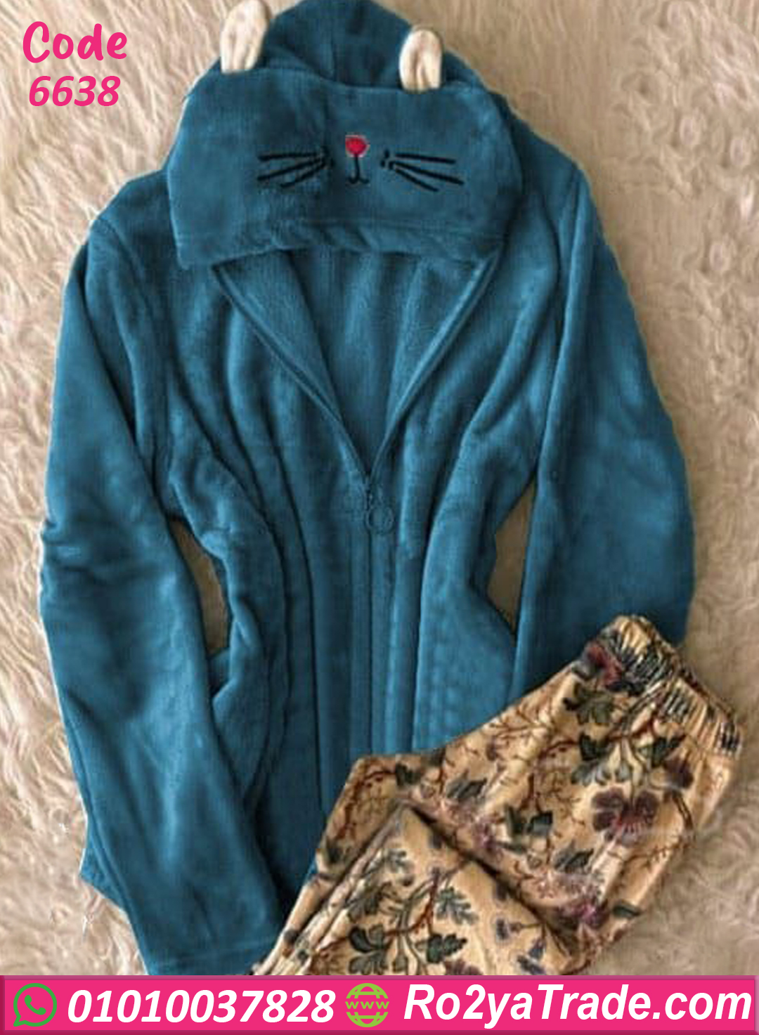 بيجامة شتوي قطيفة بغطاء أذن – كود 6638