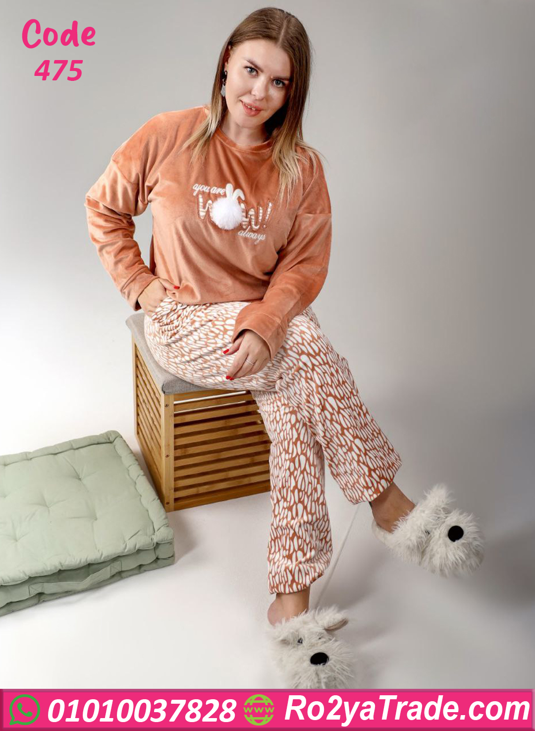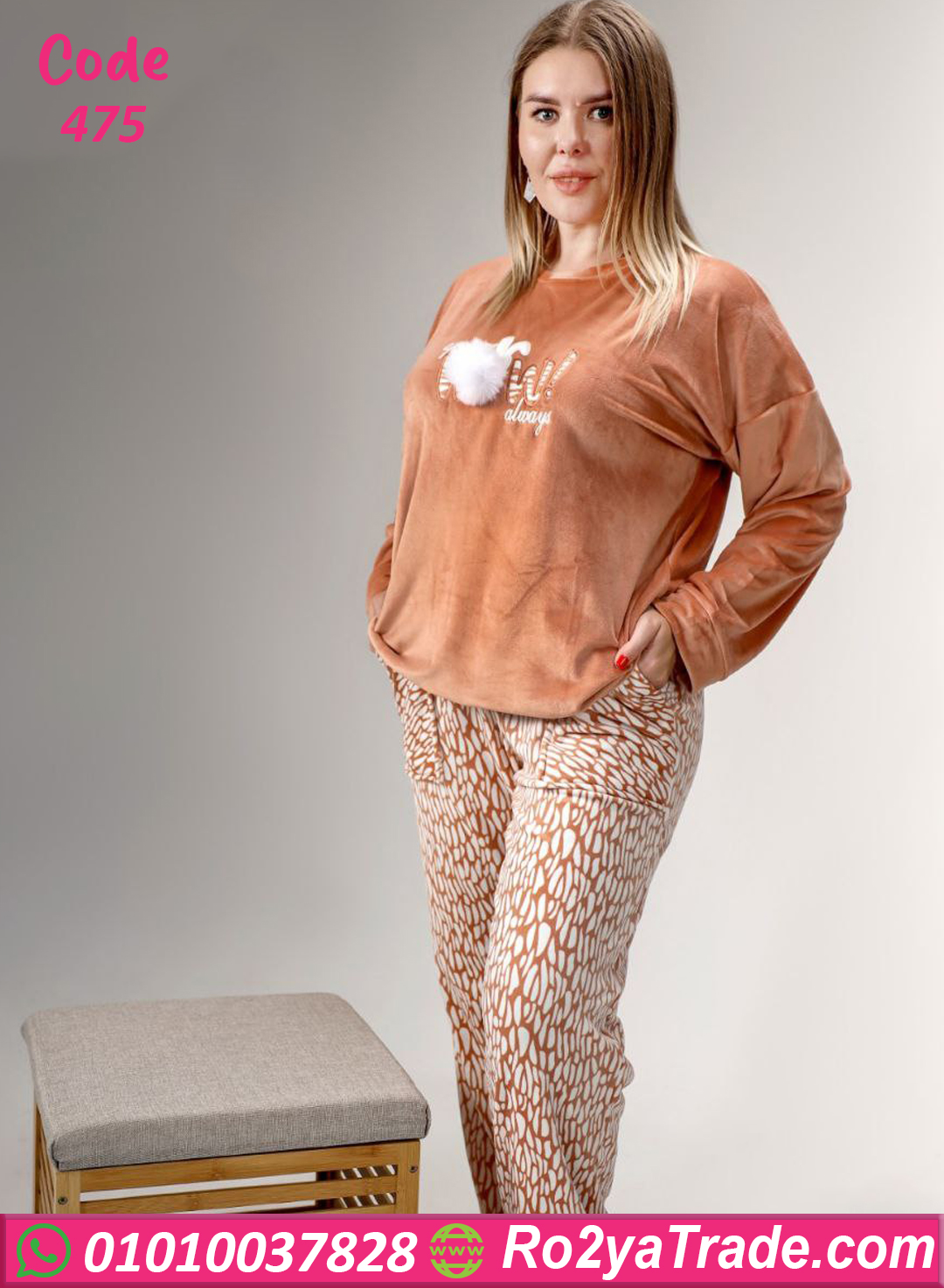 بيجامة شتوي قطيفة بيج سايز ناعمة – كود 475