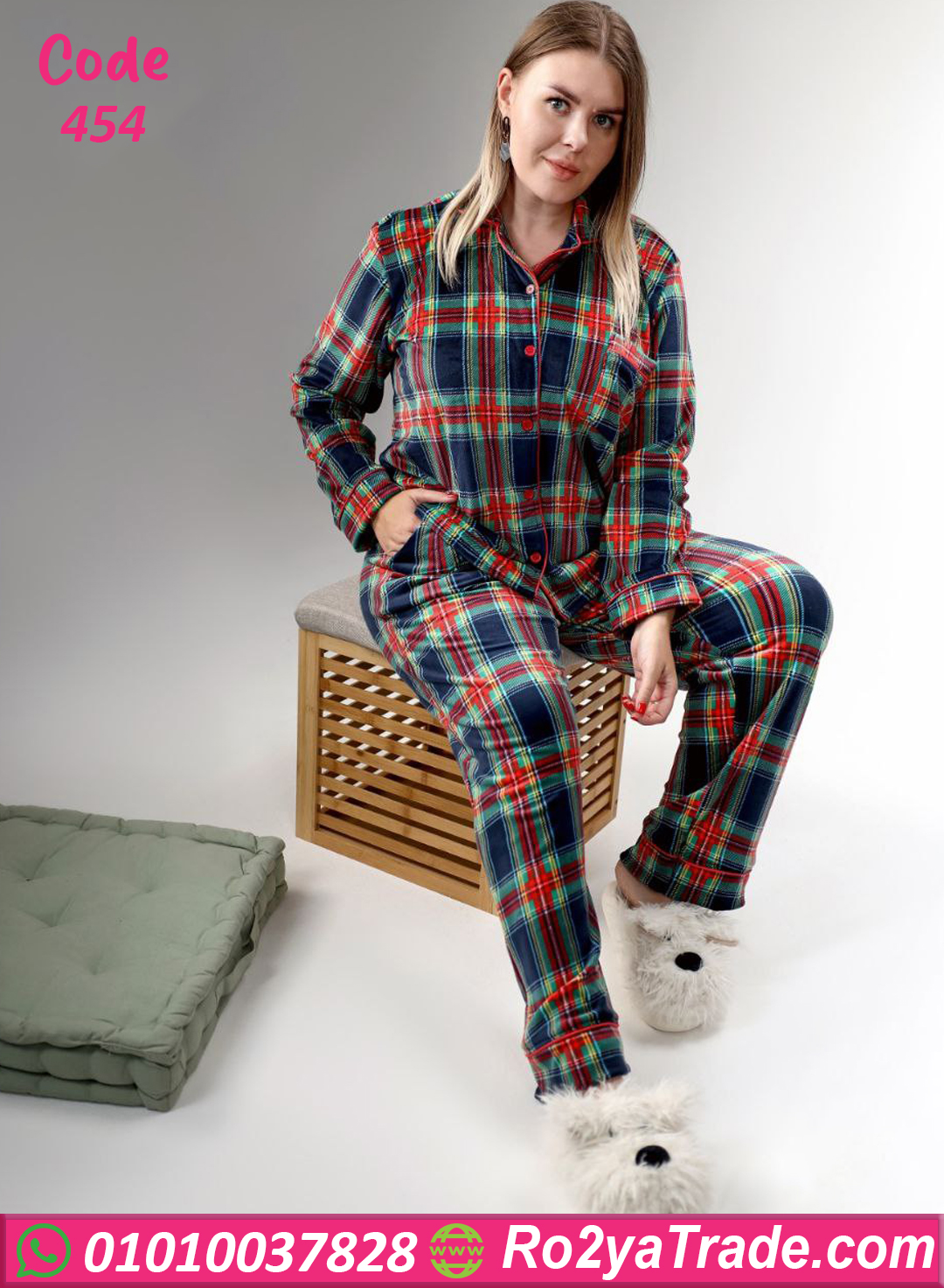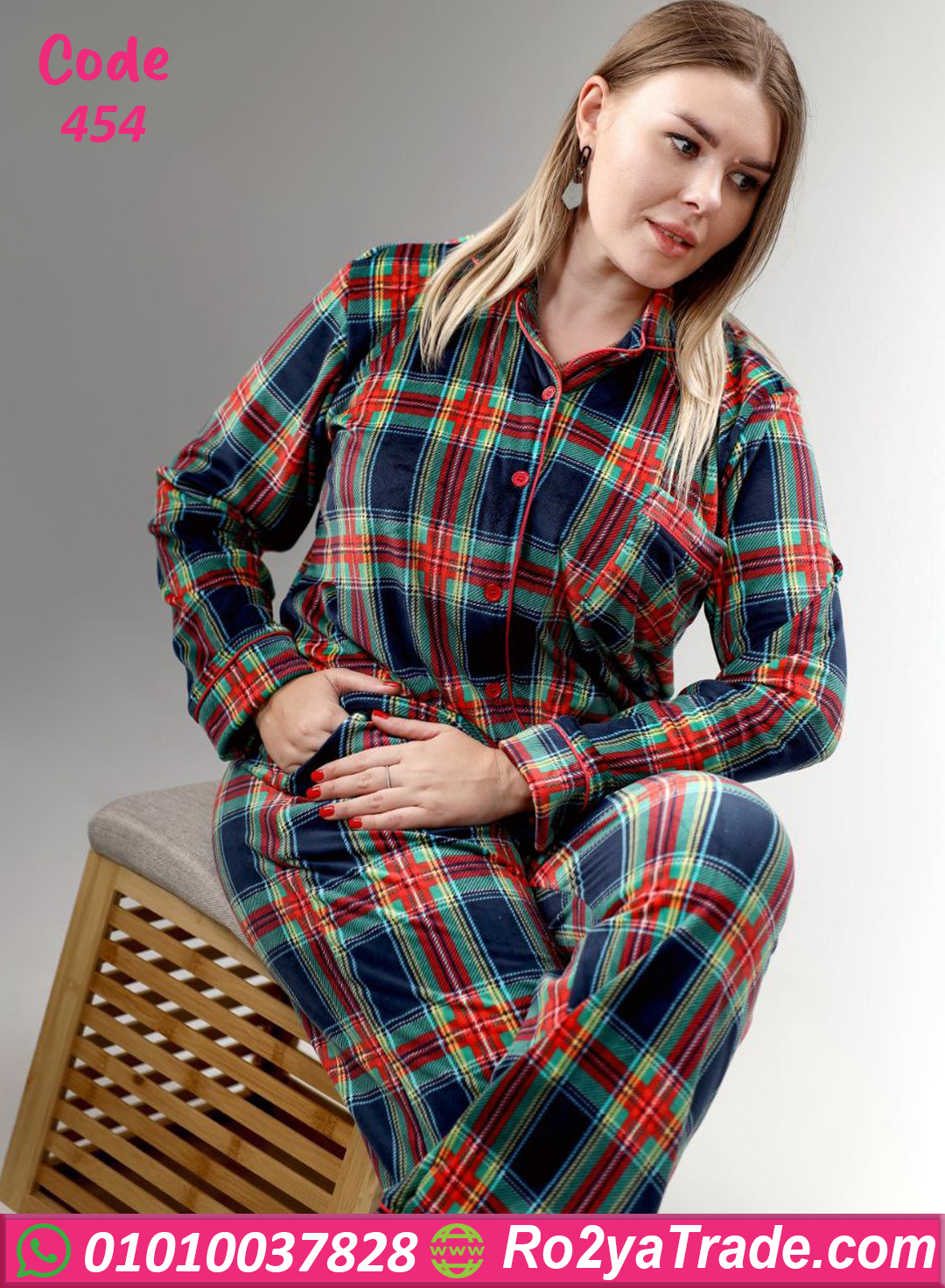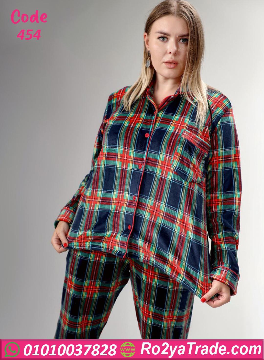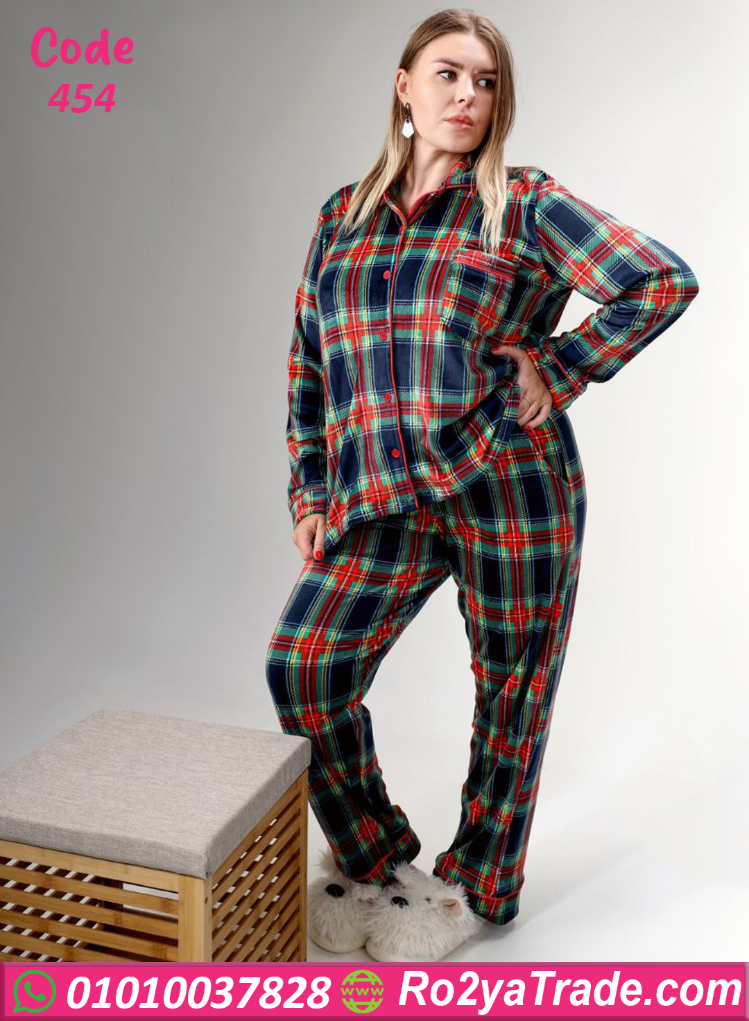 بيجامة شتوي قطيفة كاروهات – كود 454