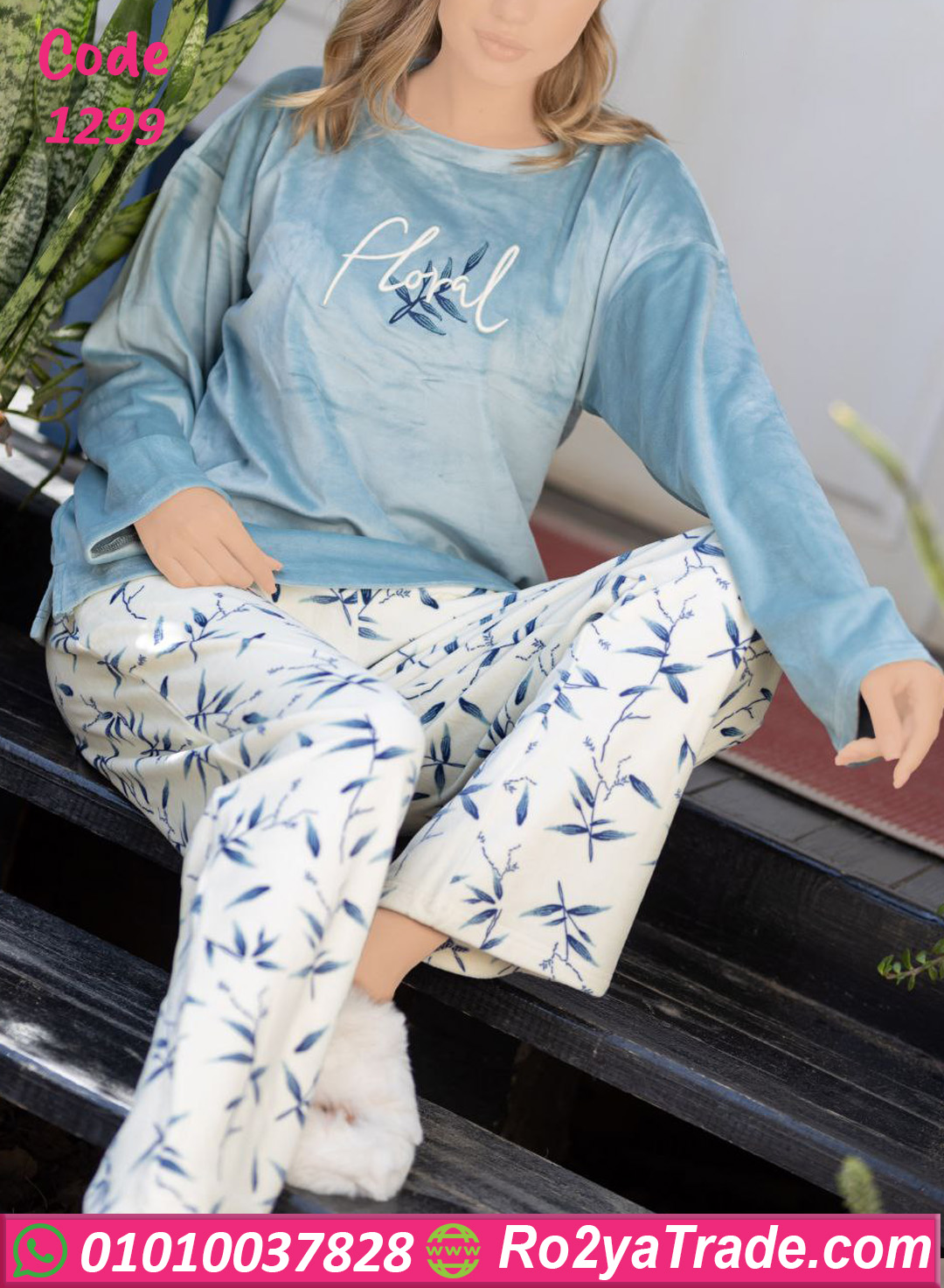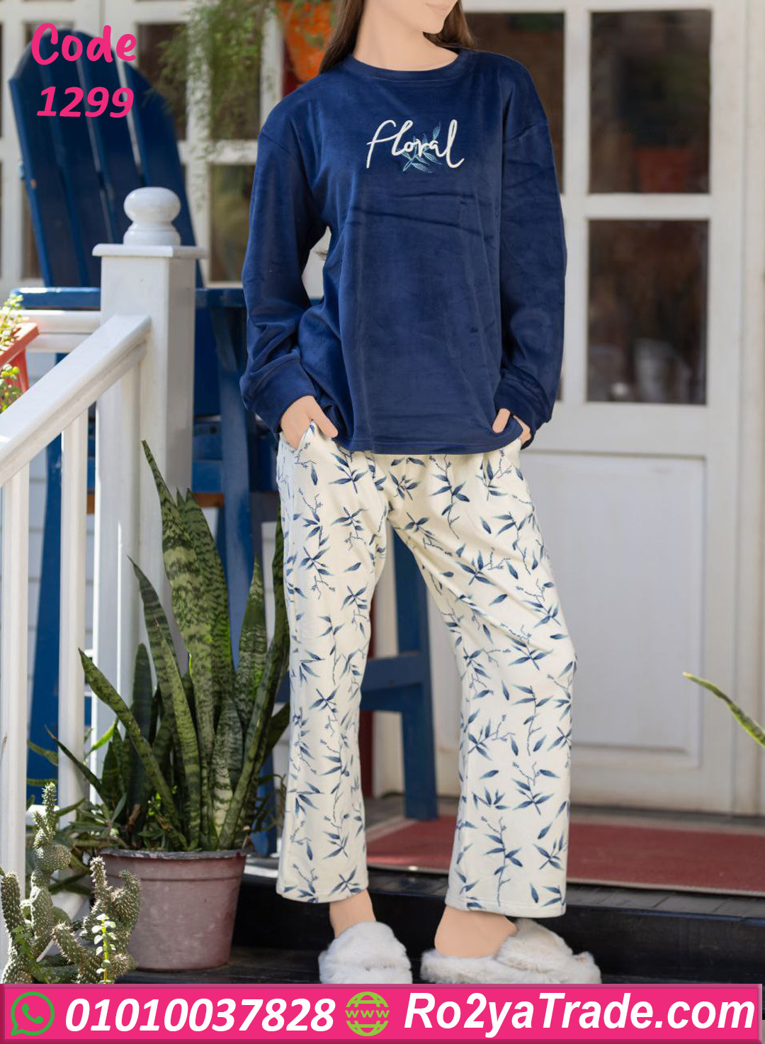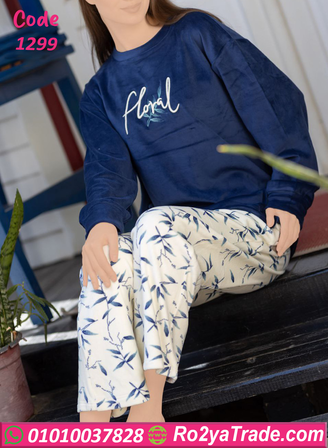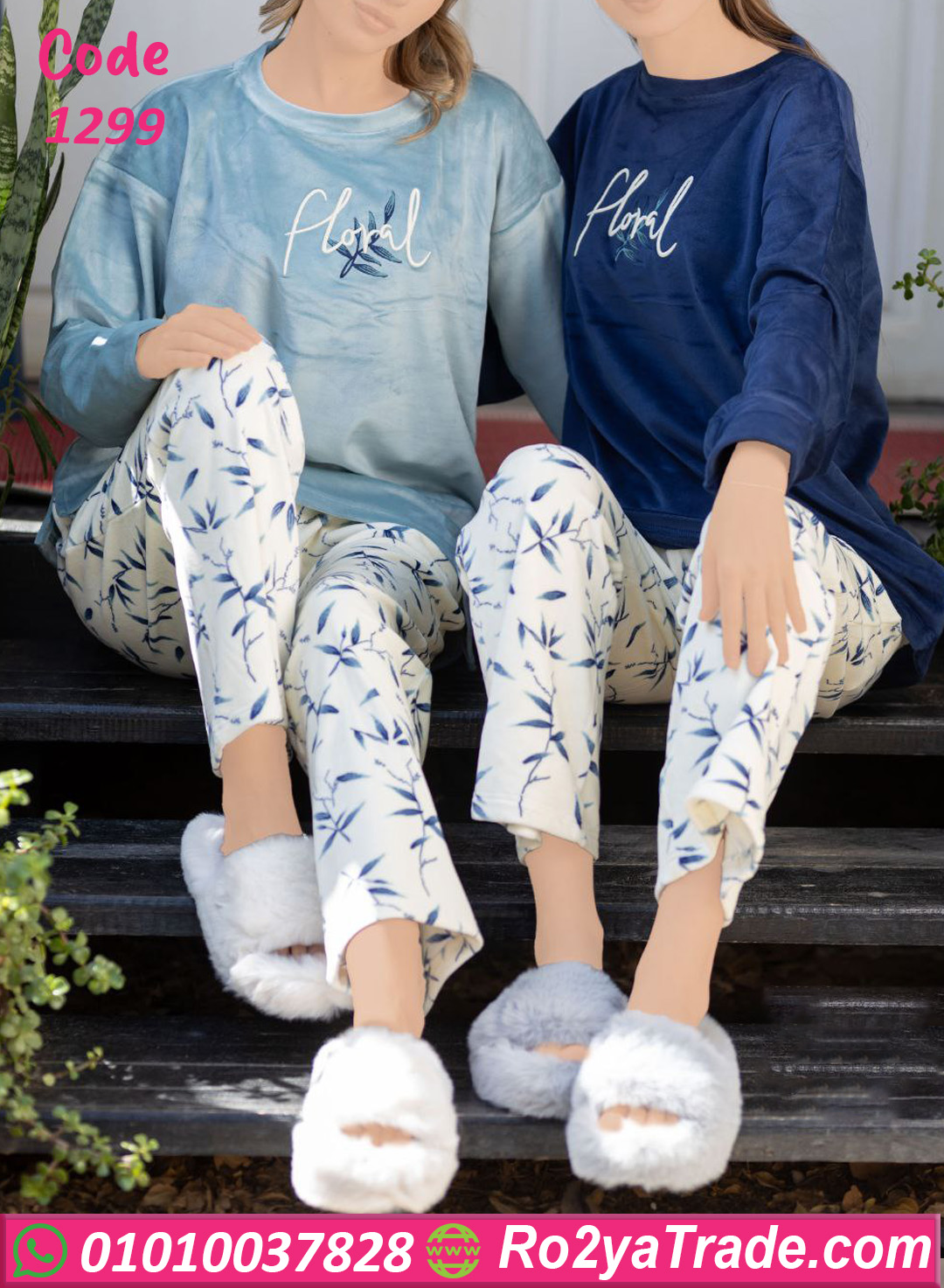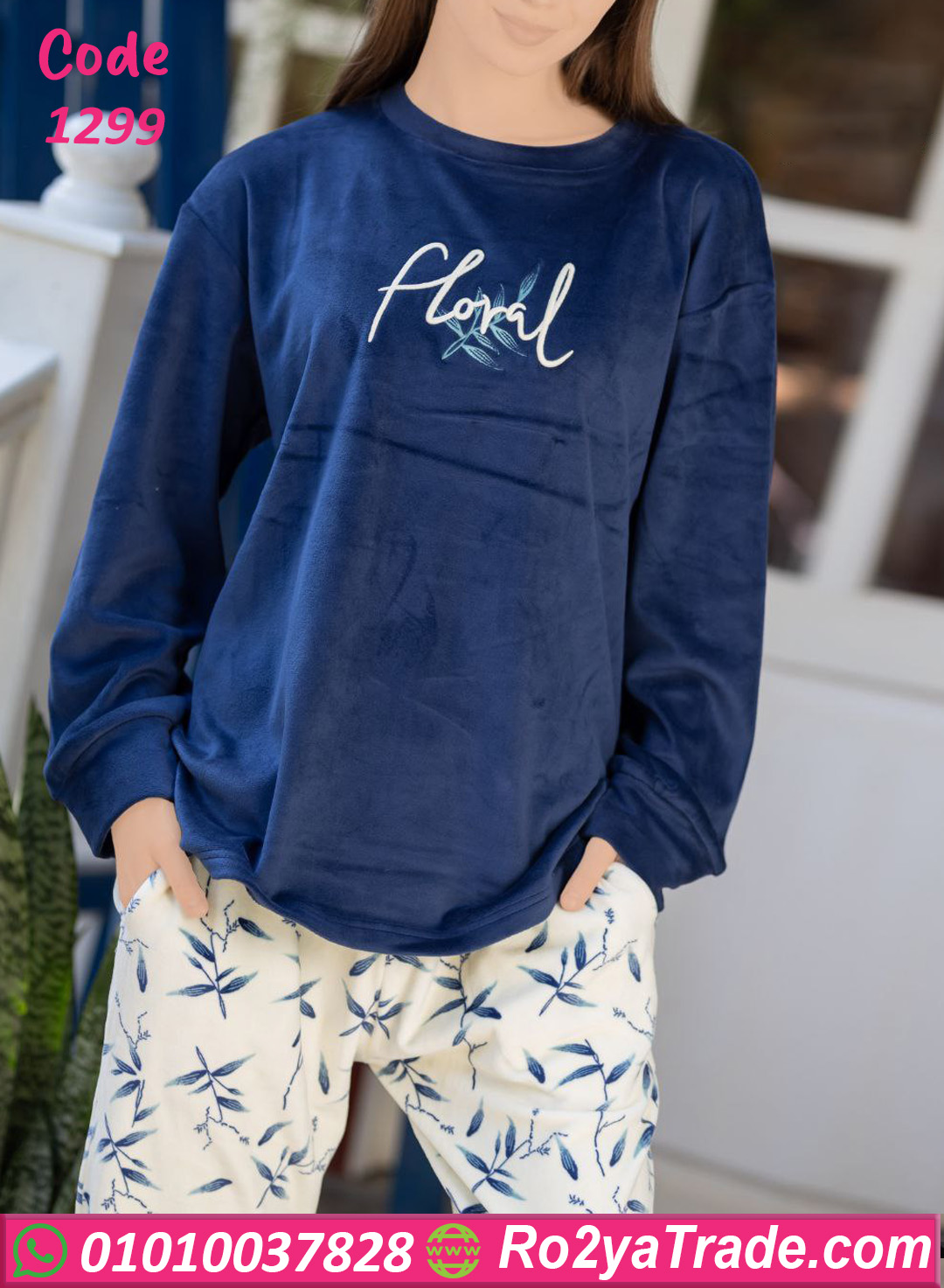 بيجامة قطيفة شتوي ناعمة جدًا، تصميم شبابي مريح وشيك للبيت، خامة دافية بتدي راحة وأناقة طول اليوم .