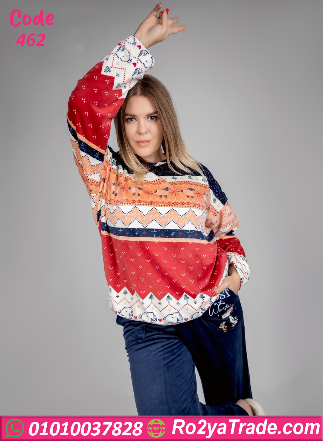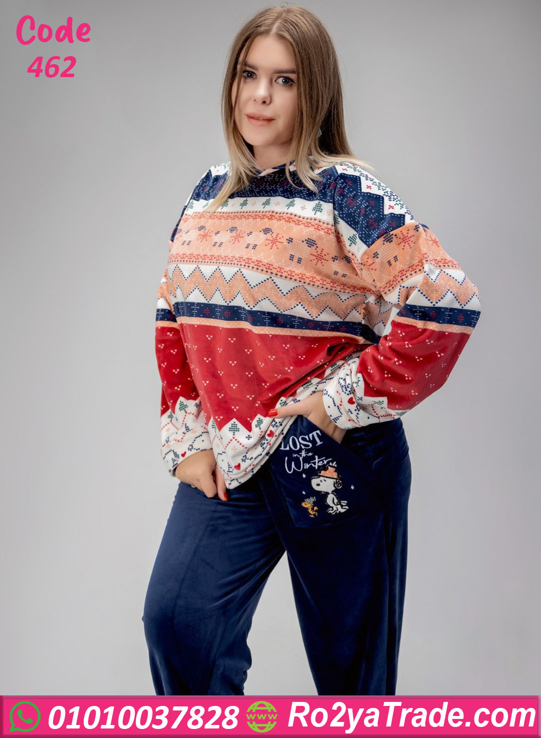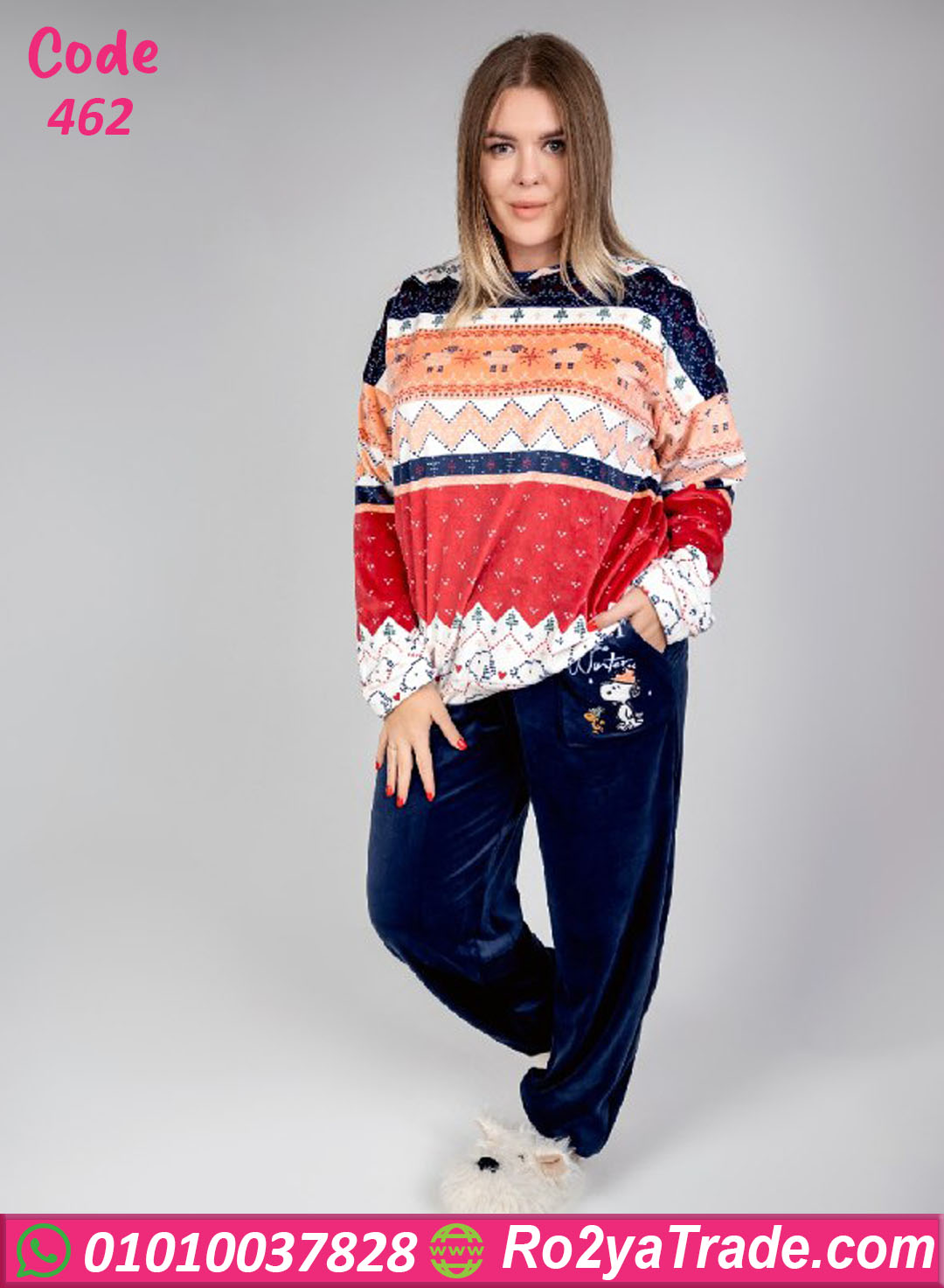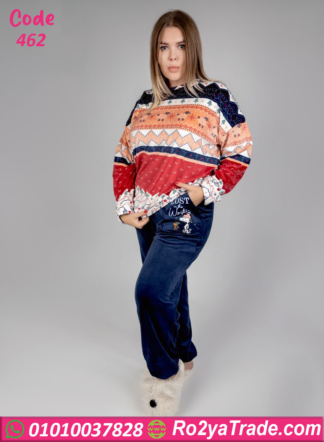 بيجامة شتوي قطيفة مطبوعة – كود 462