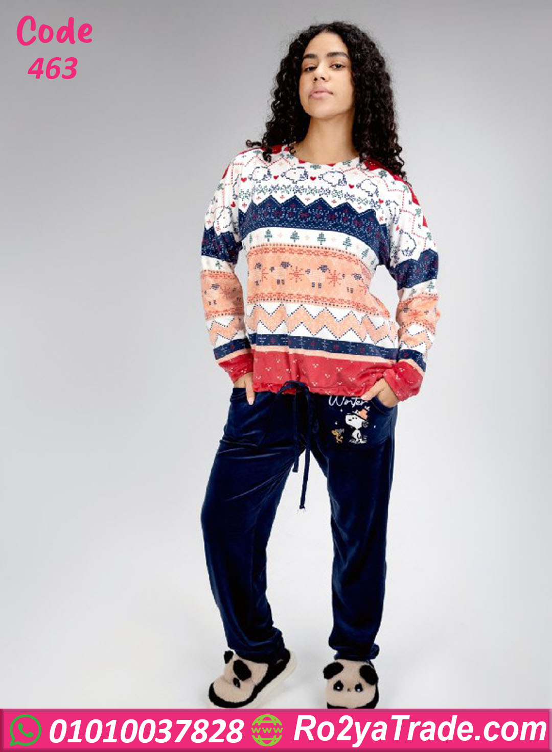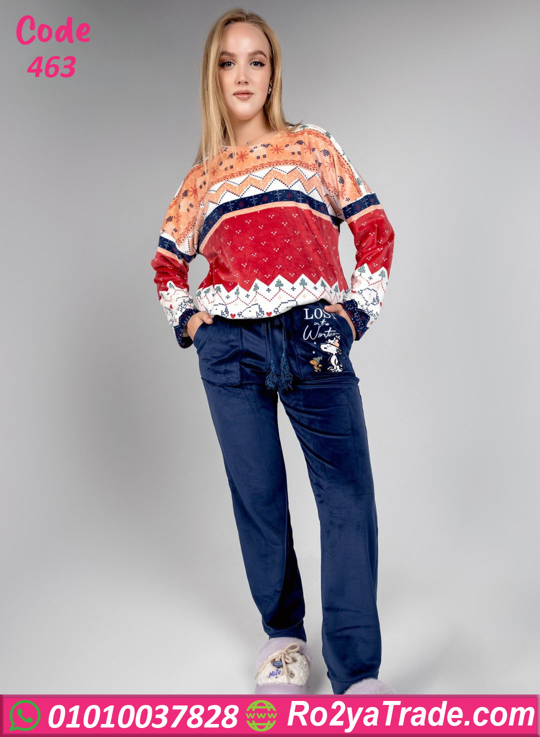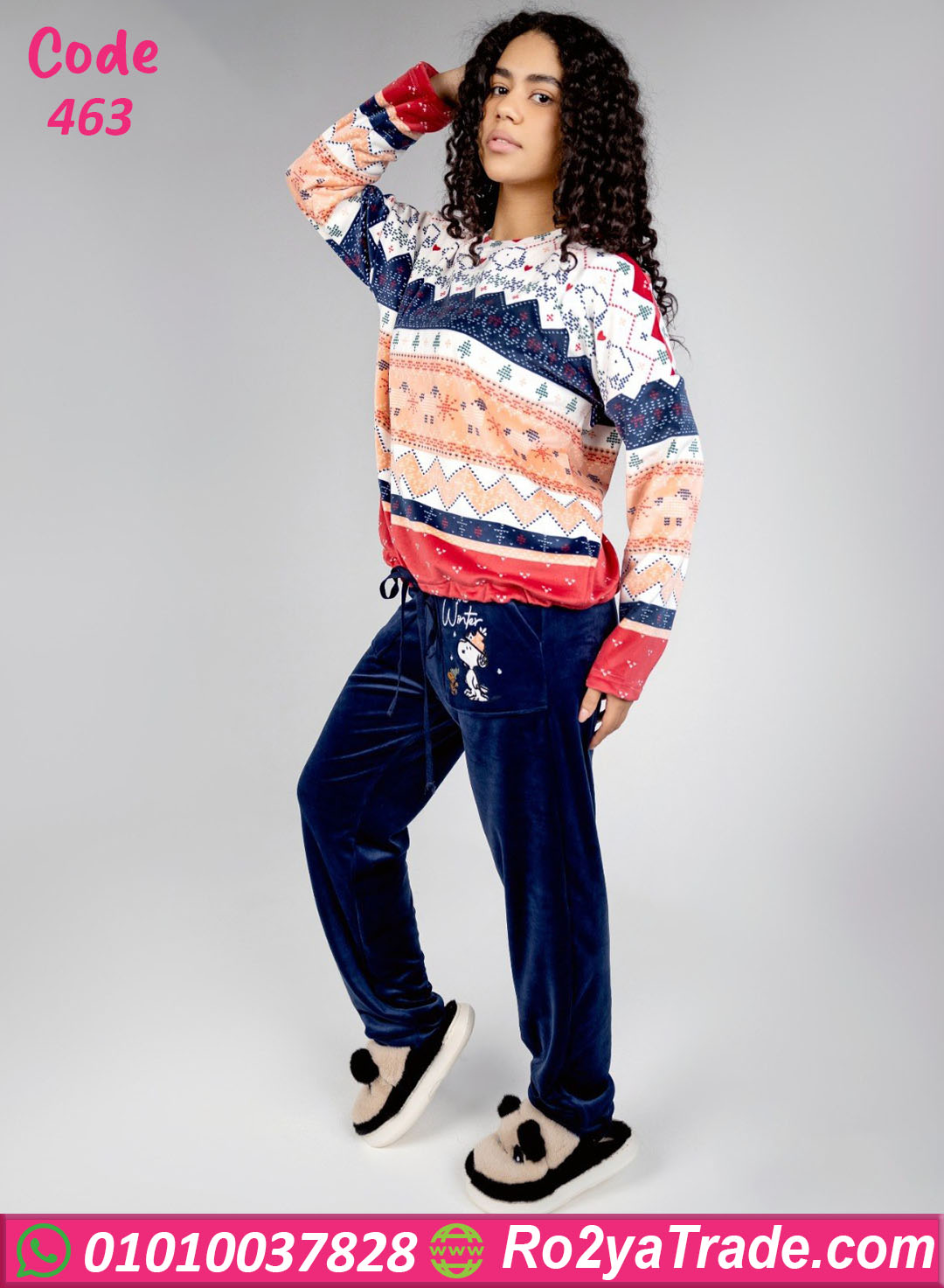 بيجامة شتوي قطيفة مطبوعة – كود 463