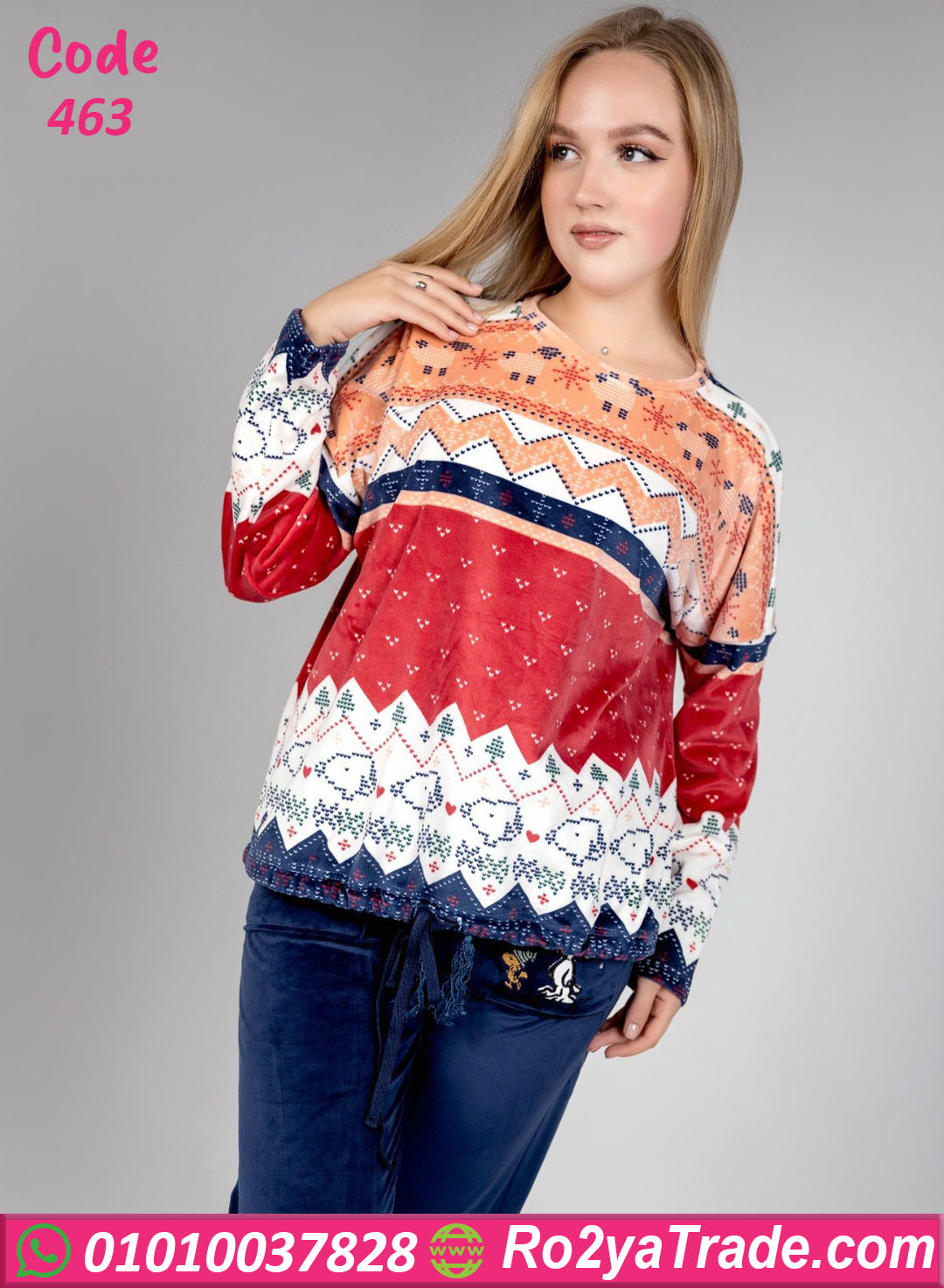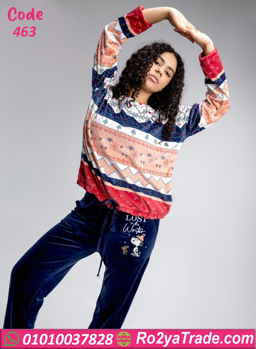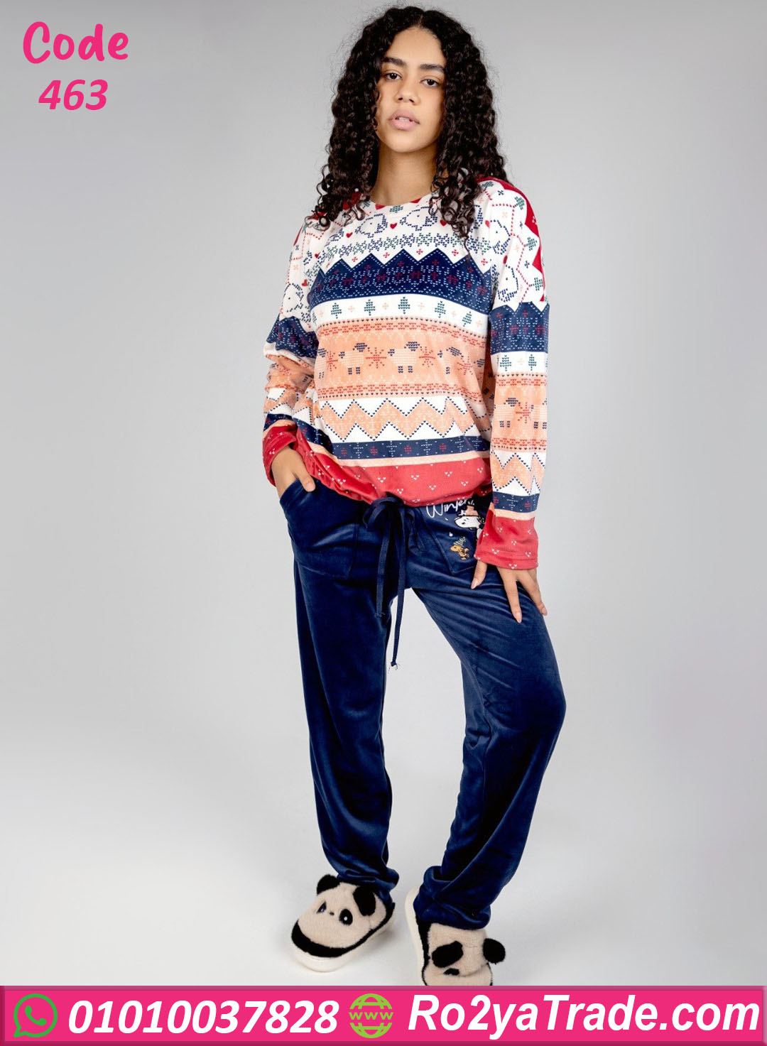 بيجامة شتوي قطيفة مطبوعة – كود 463