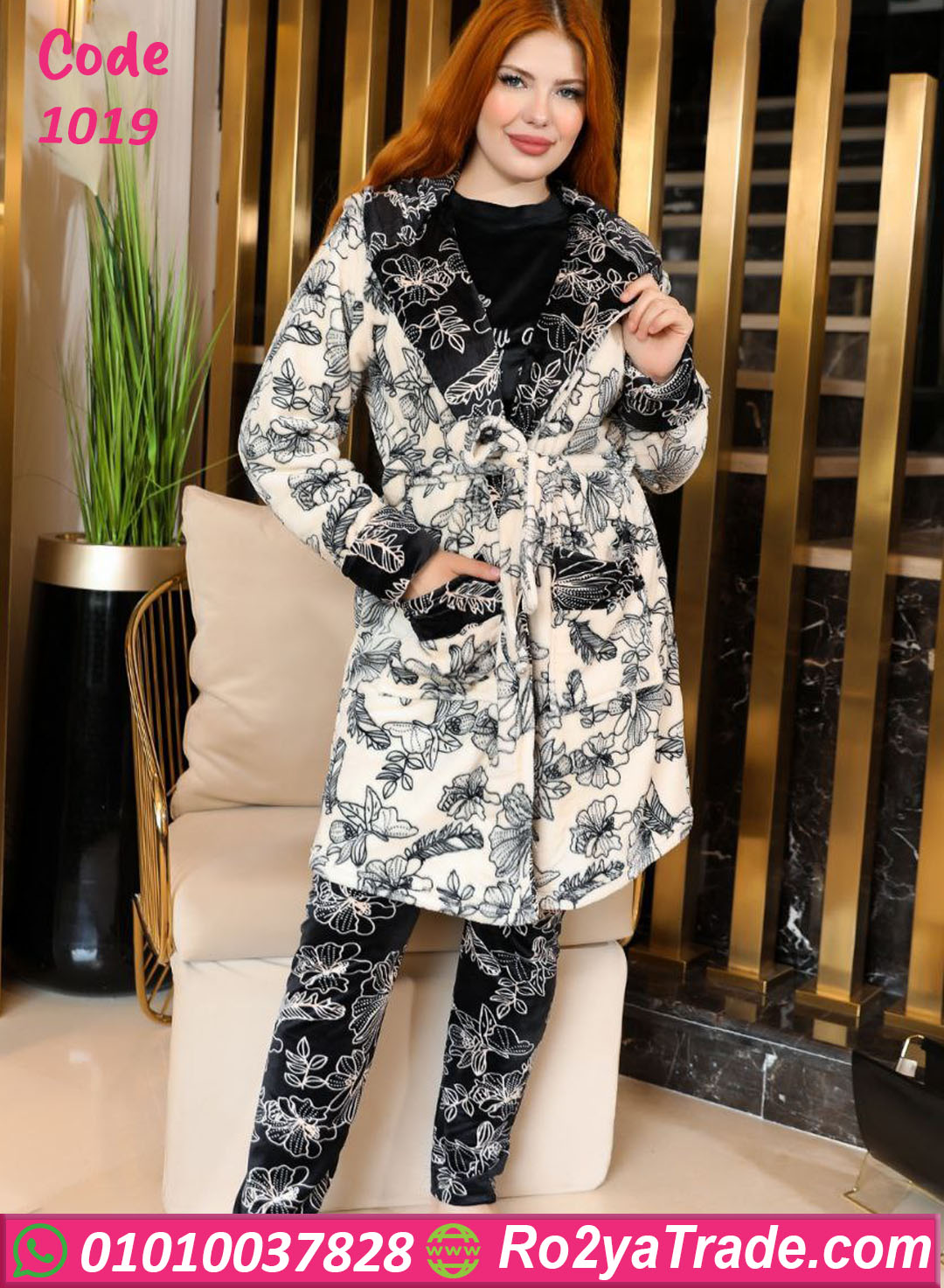 بيجامة شتوي قطيفة ناعمة بالروب – كود 1019