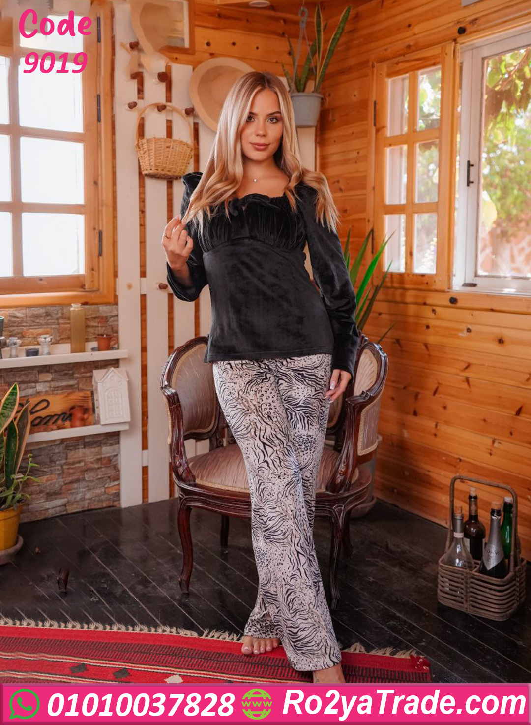 بيجامة قطيفة شتوي ناعمة ستايلش ومريحة بلمسة أنوثة