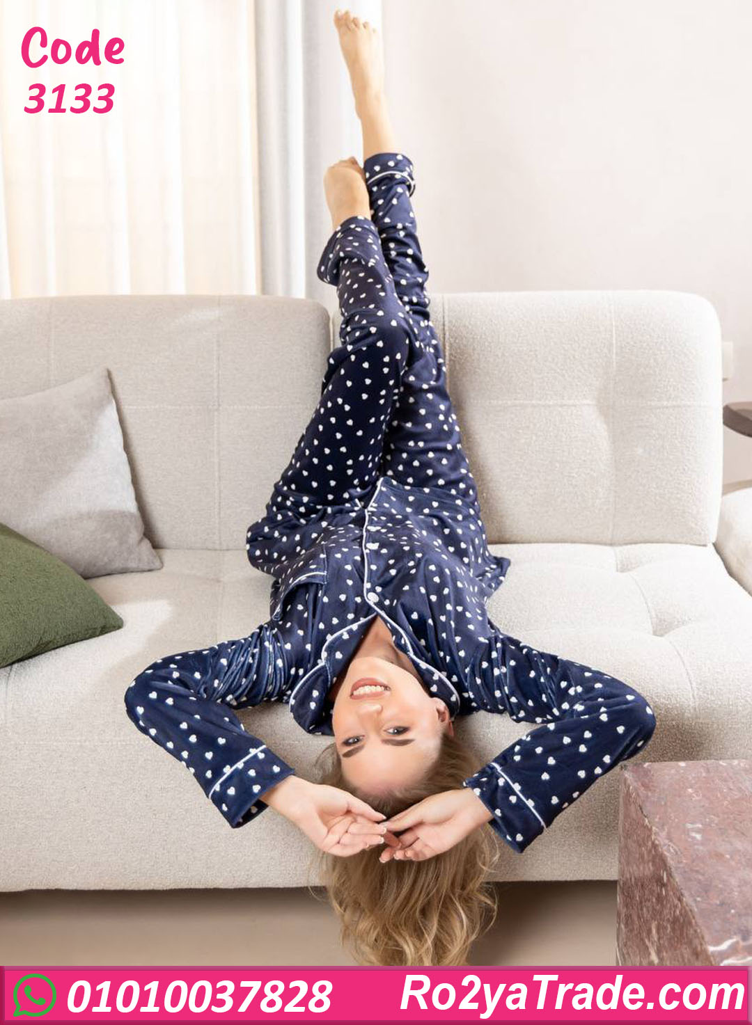 بيجامة شتوي قلوب كود 3133 اختيار مثالي لكل ست بتحب اللوك الهادي والناعم مع الراحة.