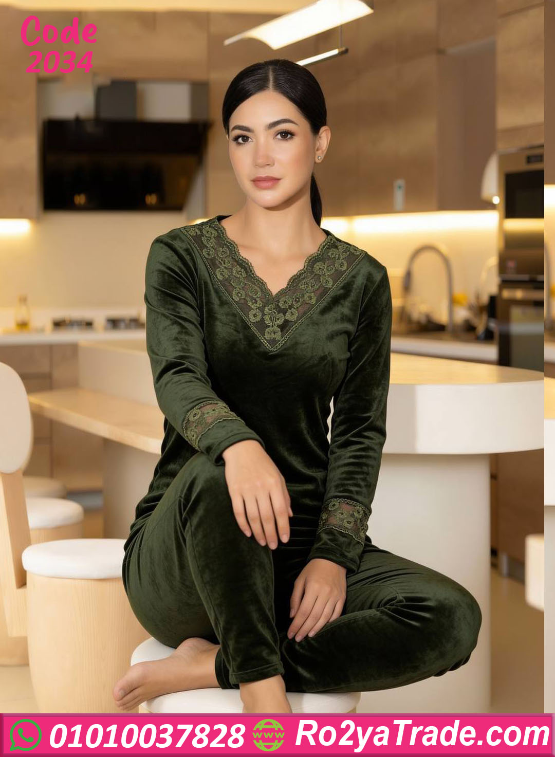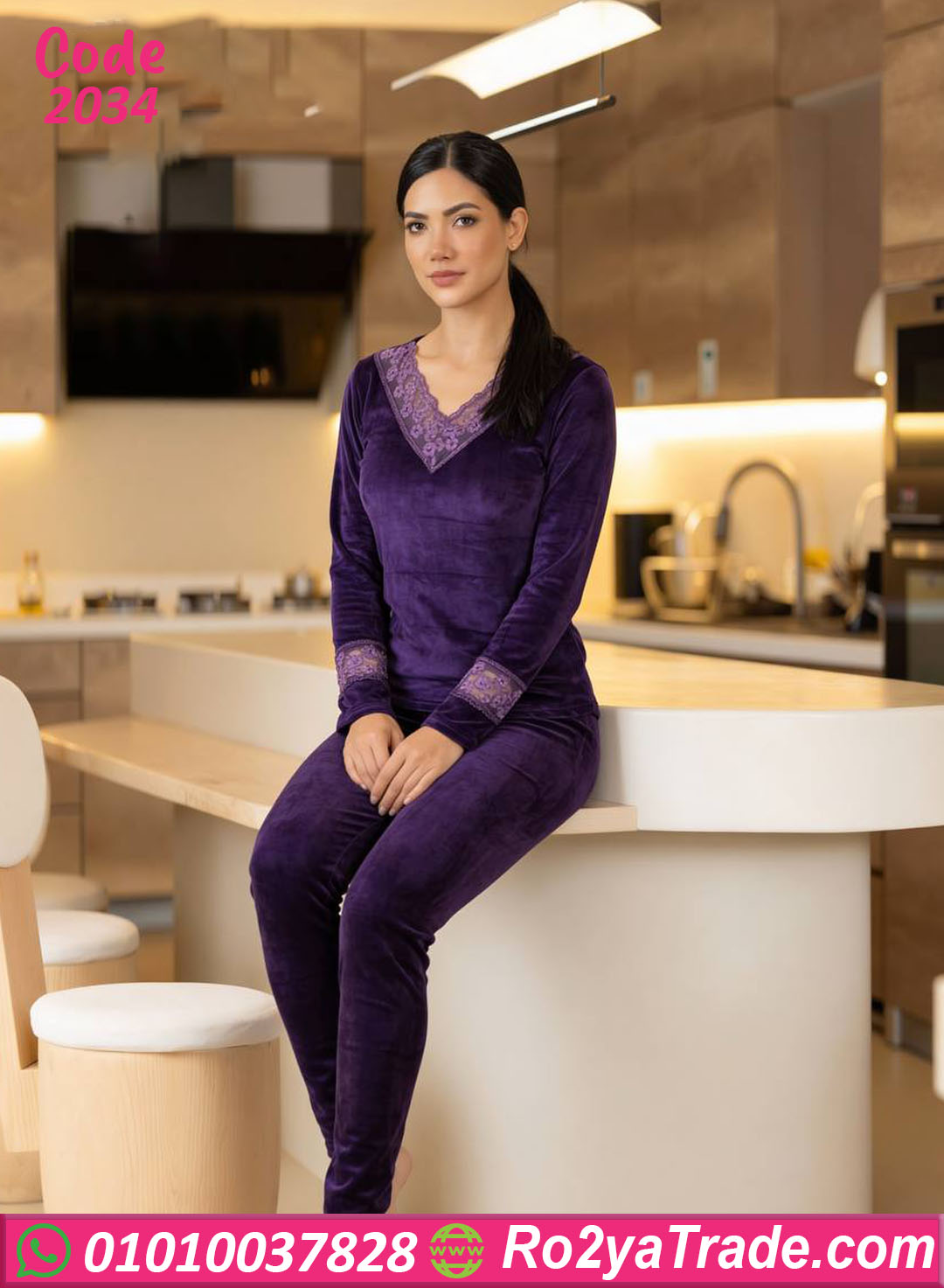 بيجامة شتوي حريمي مميزة بطقم عملي وأنيق، خامة قطيفة ناعمة ومريحة جدًا على الجلد، مناسبة للبيت والشتا وبتدي إحساس عالي بالدفا مع نعومة واضحة في اللبس. تصميم شيك بتفاصيل دانتيل على الصدر والأكمام، ينفع للاستخدام اليومي وكمان شكله أنيق ومريح في نفس الوقت.