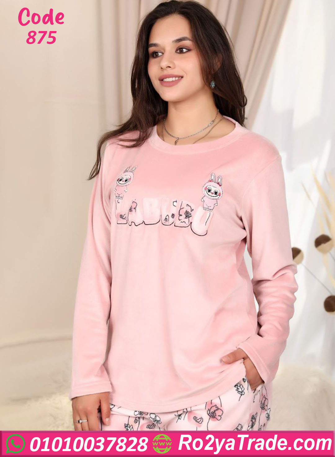 الحركة ومثالية للنوم أو القعدة في البيت، بتجمع بين الراحة والشكل اللطيف، اختيار ممتاز للي بتحب البيجامات العملية بخامة دافية وناعمة.