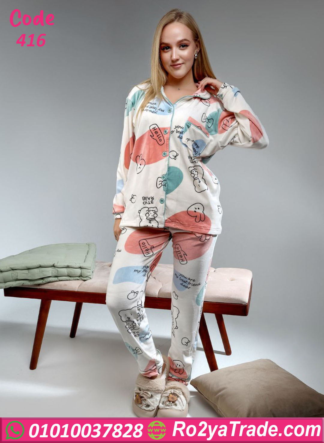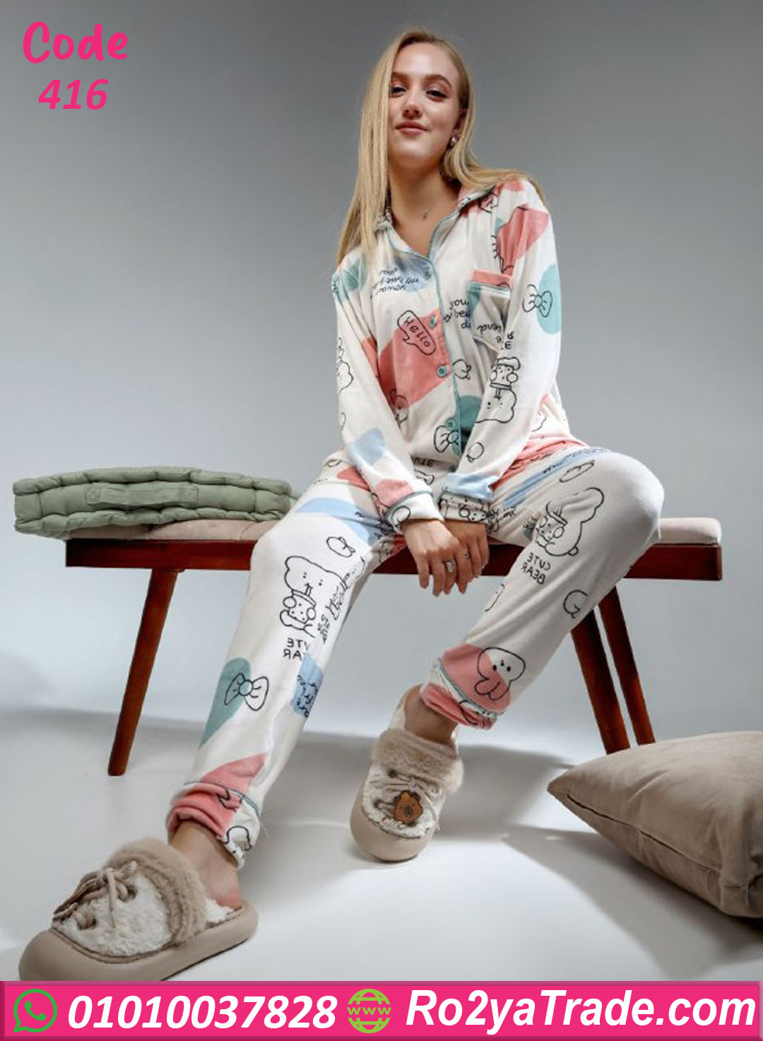 استمتعي بالدفا والنعومة مع بيجامة كود 416 المصنوعة من قطيفة مطبوعة بخامة مريحة وسميكة تناسب الشتاء ⛄