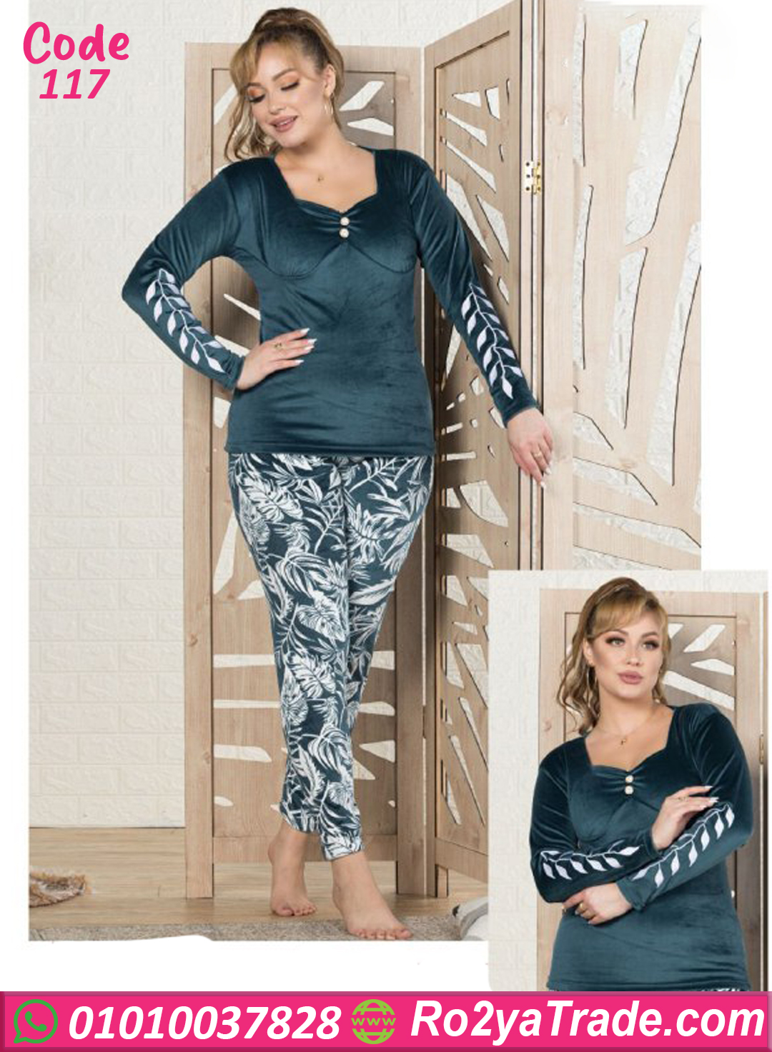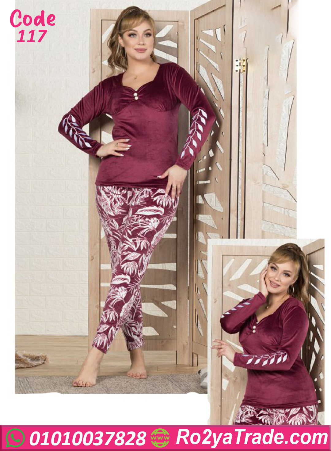 بيجامة شتوي ناعمة من قماش مخمل مريح، بتصميم شيك في الكمّات وتفاصيل عصرية.