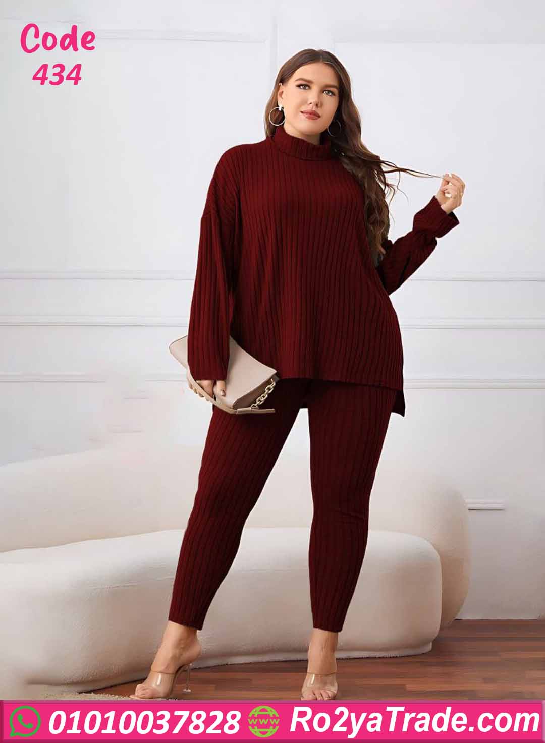 بيجامة شتوي مضلعة برقبة عالية – كود 434