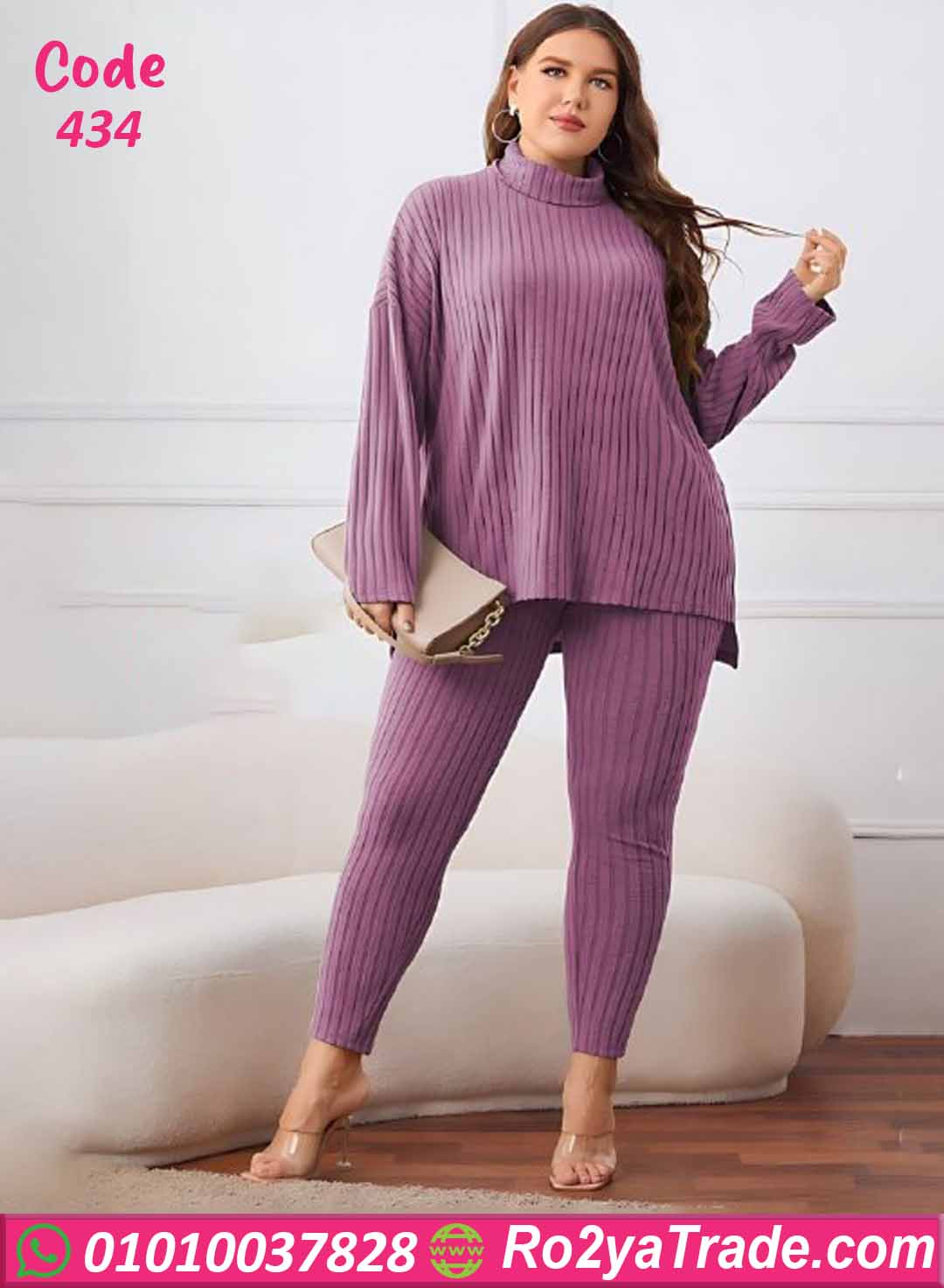 بيجامة كود 434 من ماركة Big Ladies مصممة بخامة مضلعة مرنة ومريحة تعطي شكل أنيق على الجسم وتناسب الاستخدام اليومي.