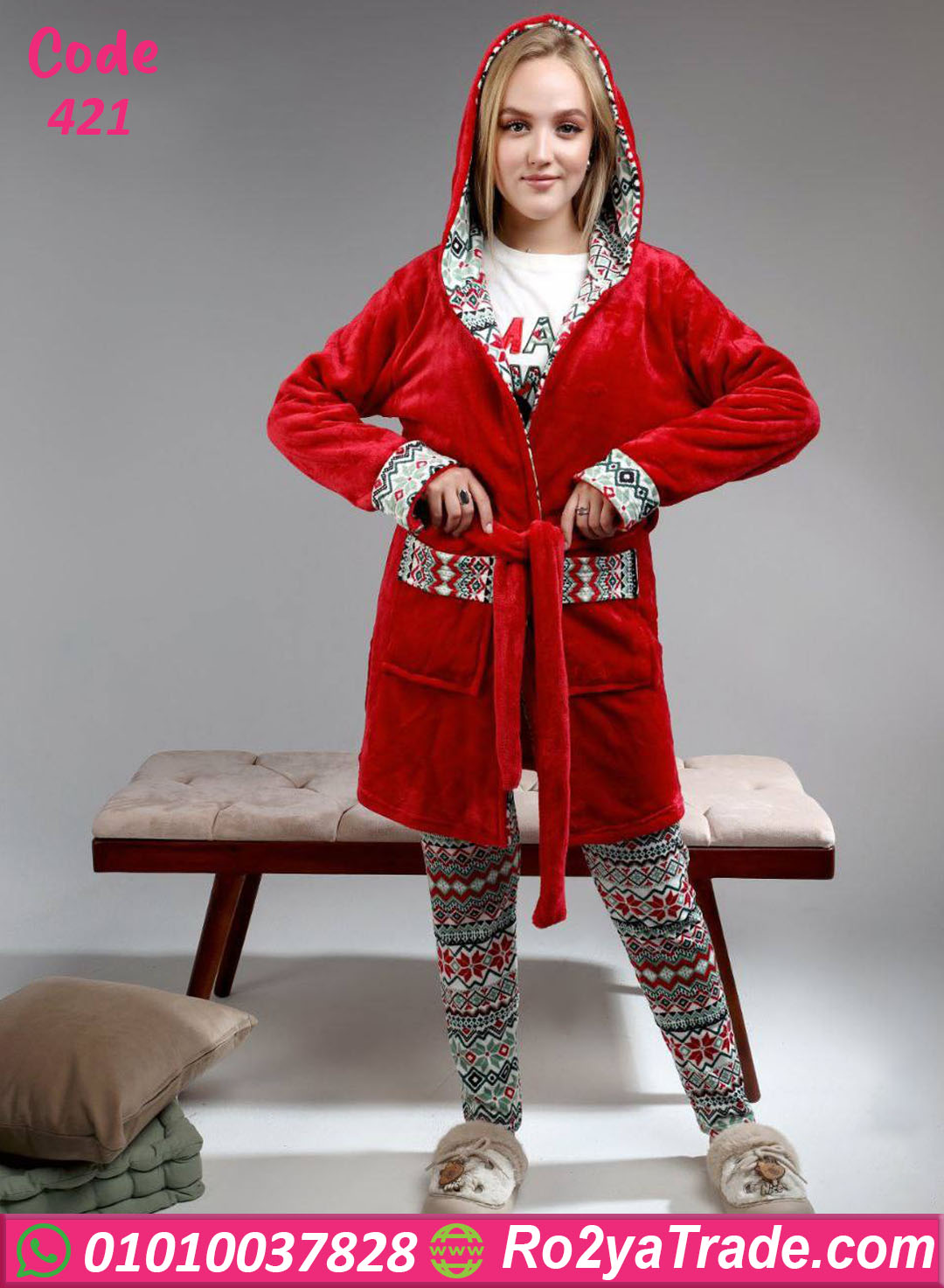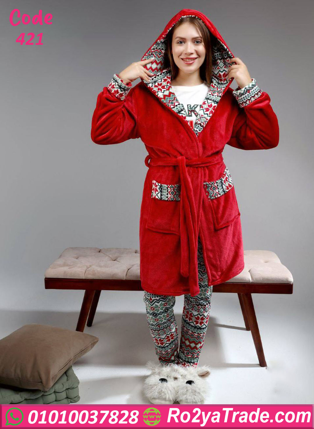 استمتعي بالدفا والأناقة في نفس الوقت مع بيجامة كود 421 بخامتها القطيفة الناعمة والمريحة ❤️