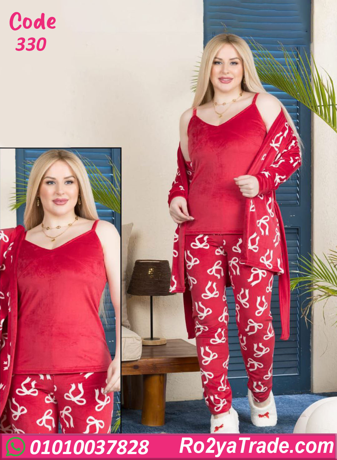 بيجامة شتوي 3 قطع كود 330 اختيار مثالي لكل ست بتحب اللوك الناعم والأنثوي مع الدفا في أيام الشتا.