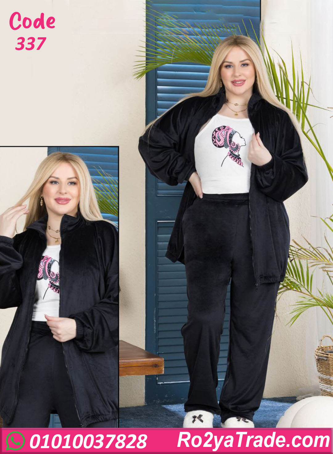 بيجامة شتوي شيك ومريحة بتصميم عملي يناسب اللبس البيتي اليومي، مكوّنة من تيشيرت + بنطلون + جاكيت بسوستة علشان تجمع بين الدفا والراحة والشكل الأنيق.