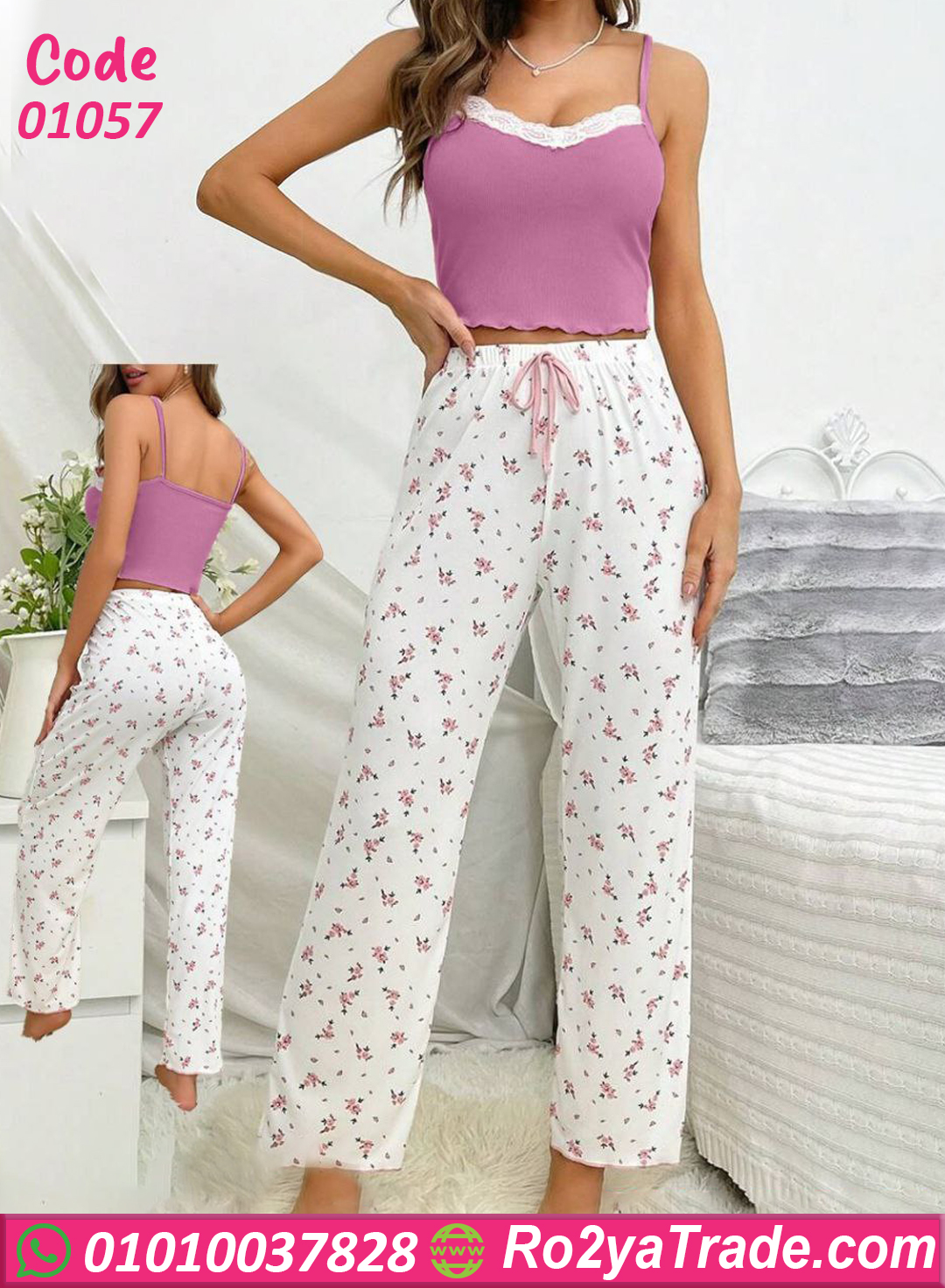 لو عايزة طقم حلو ومريح وسعره مناسب يبقى البيجامة دي اختيار مثالي ليكي – كود 01057.