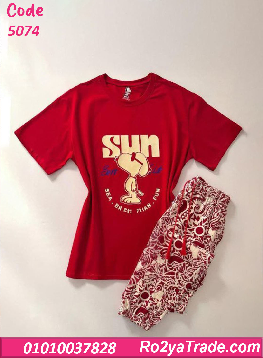 لو بتحبي الستايل الكيوت والبسيط 😍، موديل بيجامة صيفي – كود 5074 هيكون اختيارك المثالي.