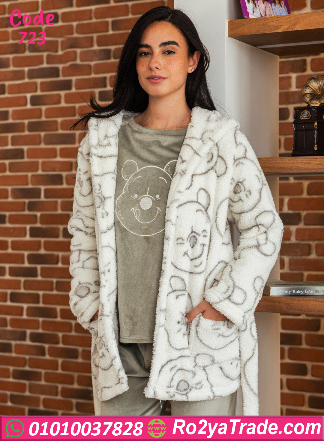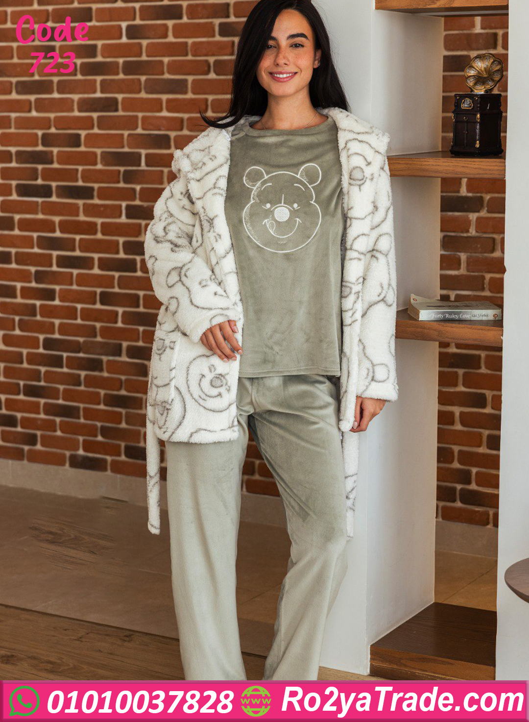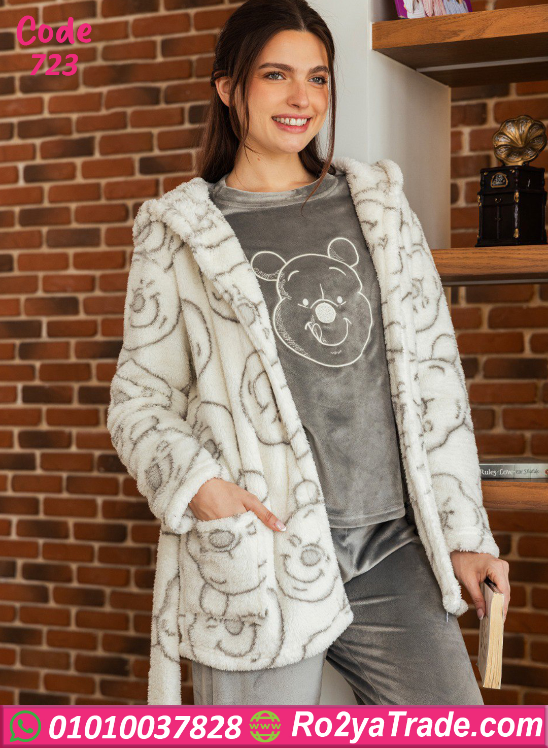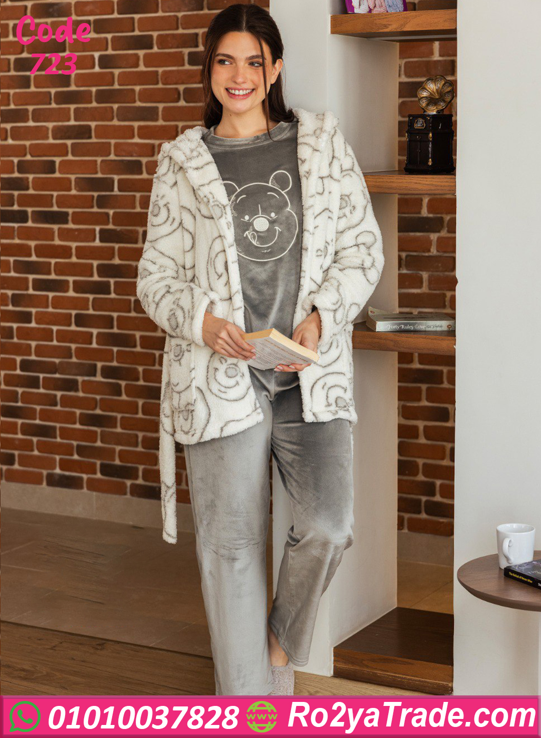 بيجامة بخامة فرو ناعمة ودافية جدًا، تصميم بسيط وشيك مع روب طويل بخامة سوفت ممتازة 💕