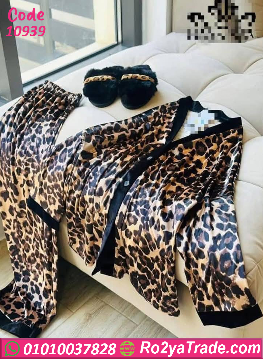 بيجامة قطيفة هايدي ناعمة بنقشة التايجر الجريئة 😍، خامة دافية ومريحة جدًا للشتا، بتجمع بين الأناقة والراحة في نفس الوقت 💕