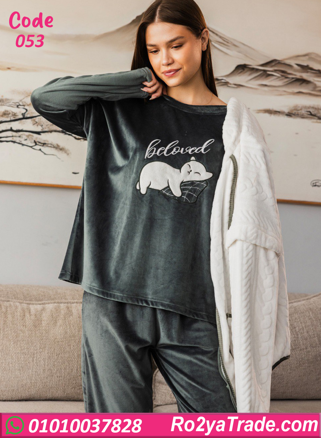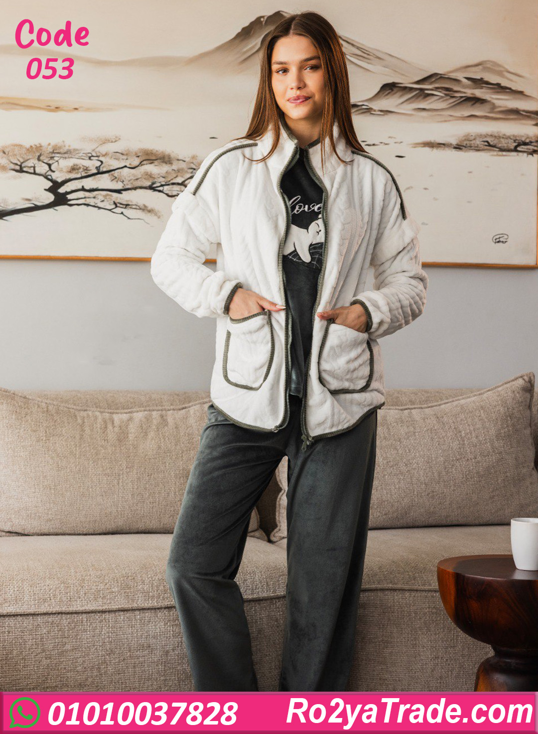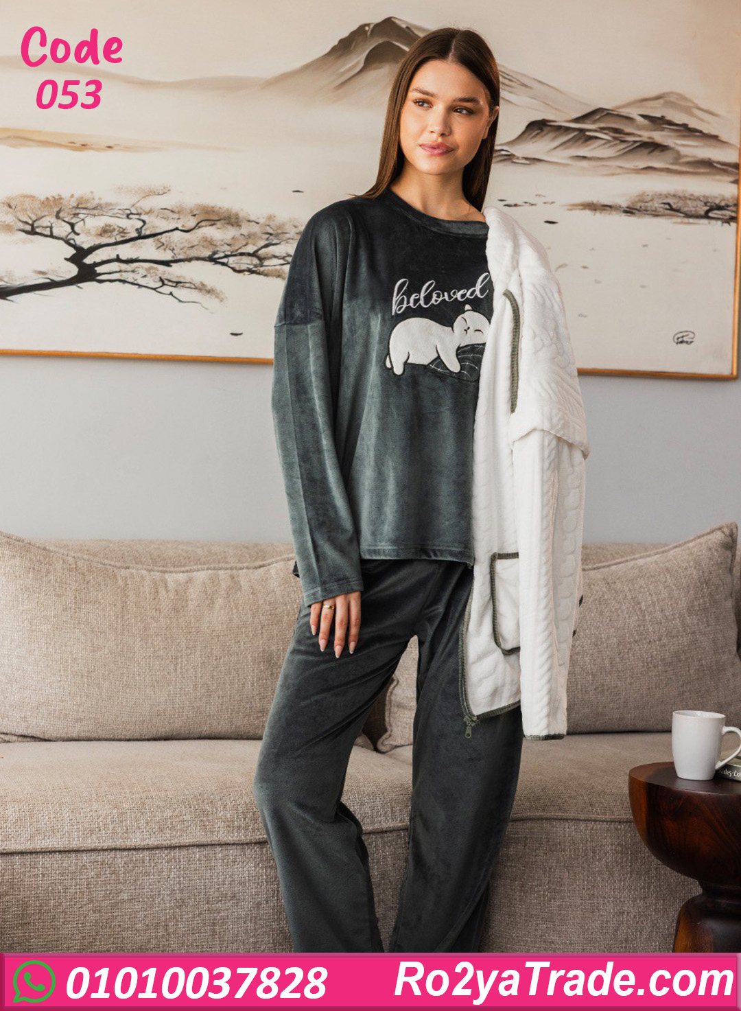 بيجامة قطيفة حريمي شتوي ناعمة ودافية بتصميم عملي وشيك،
