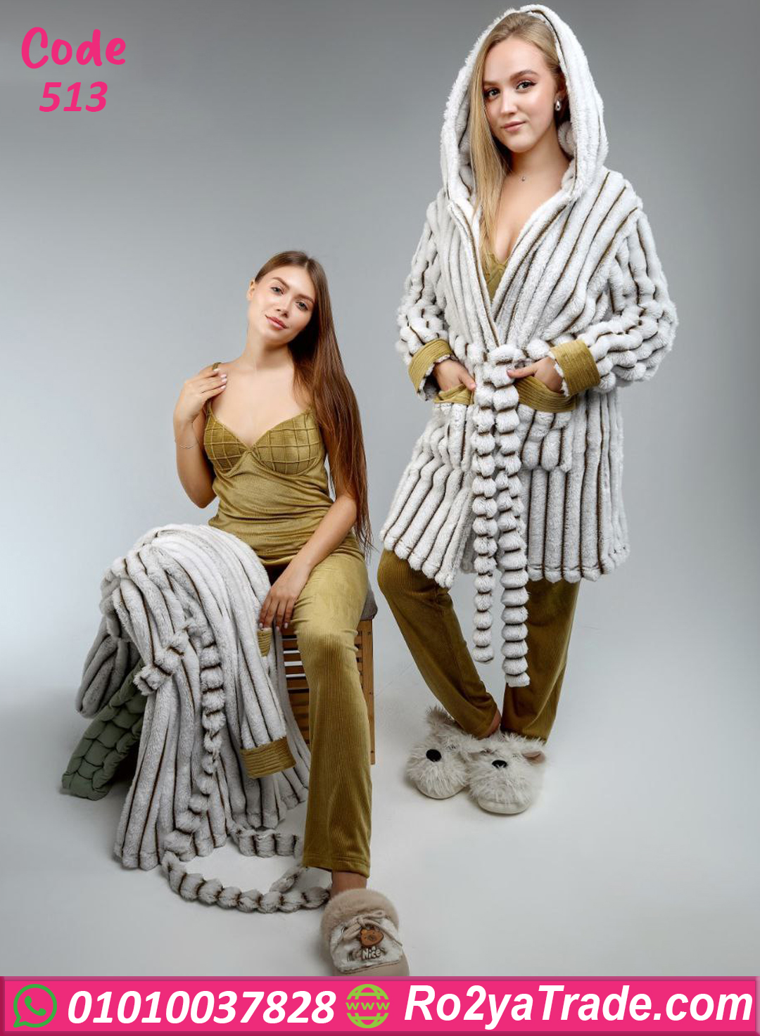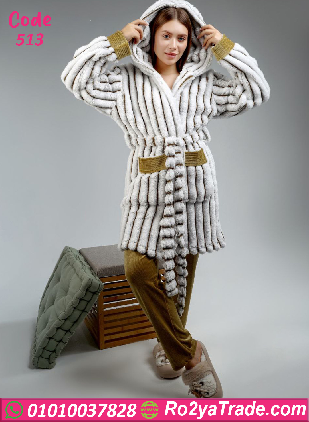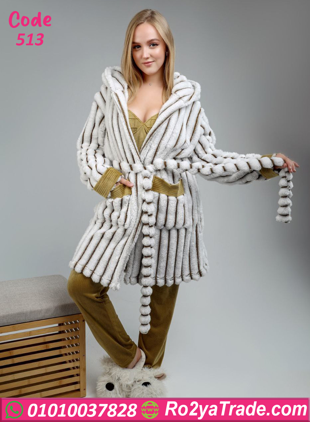 بيجامة قطيفة شتوي بالروب الفرو – 513