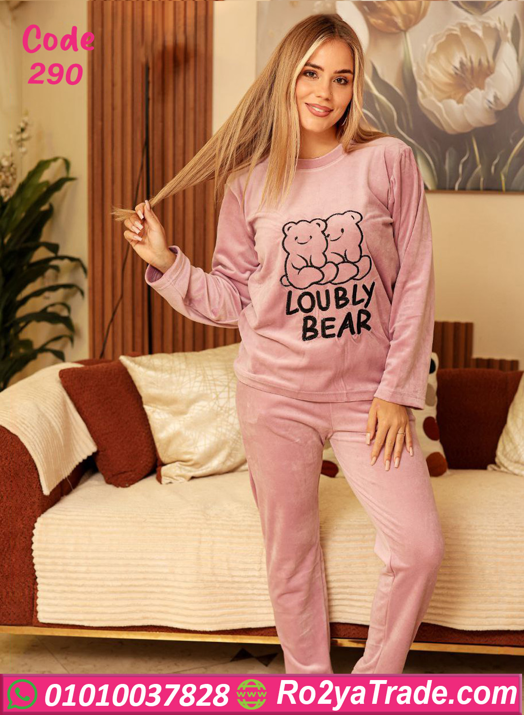 لو بتدوري على بيجامة شتوي تجمع بين الدفا والشكل اللطيف، فموديل كود 290 اختيار مثالي ليكي. البيجامة معمولة من خامة قطيفة ناعمة بتدي إحساس بالراحة والدفا طول اليوم، وبتخليها مناسبة جدًا لأجواء الشتاء الباردة. التصميم مميز برسمة دببة شيك تضيف لمسة أنوثة وبساطة في نفس الوقت، وتخلي شكل البيجامة مختلف عن الموديلات التقليدية. القصّة مريحة وواسعة، مناسبة للحركة واللبس الطويل من غير أي إحساس بالضيق. البيجامة عملية جدًا للبيت، النوم، القعدة اليومية، وكمان اختيار حلو كهدية شتوي. خامتها ناعمة على البشرة وسهلة العناية، وده يخليها قطعة أساسية في دولابك في الشتاء.