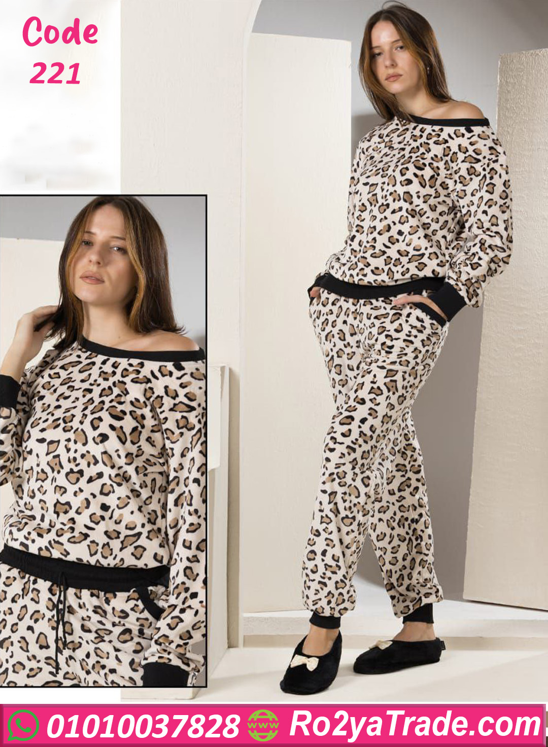 بيجامة قطيفة شتوي نقشة ليوبارد تحفة وأنيقة جدًا للشتاء