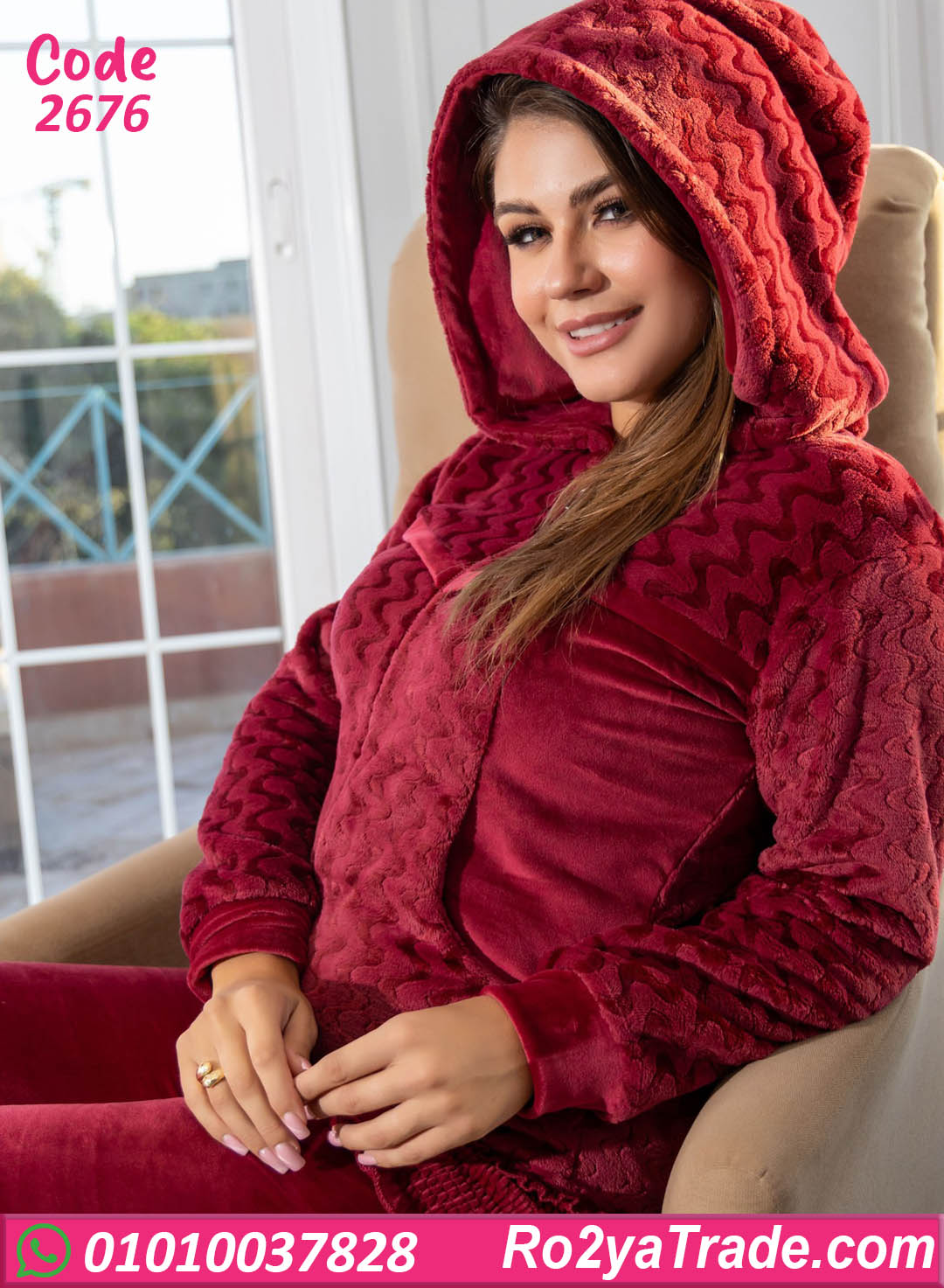 بيجامة شتوي حريمي بخامة قطيفة عالية الجودة بتدي إحساس فوري بالدفا والراحة. التصميم هودي عصري مع جاكيت وبنطلون بقصة مريحة تسمح بالحركة من غير أي ضيق. الخامة ناعمة على البشرة ومناسبة للبس لفترات طويلة، وبتحافظ على الحرارة في الجو البارد. البيجامة عملية جدًا للاستخدام اليومي، قعدة البيت، أو الاسترخاء، وكمان اختيار ممتاز للهدايا الشتوي. كود 2676