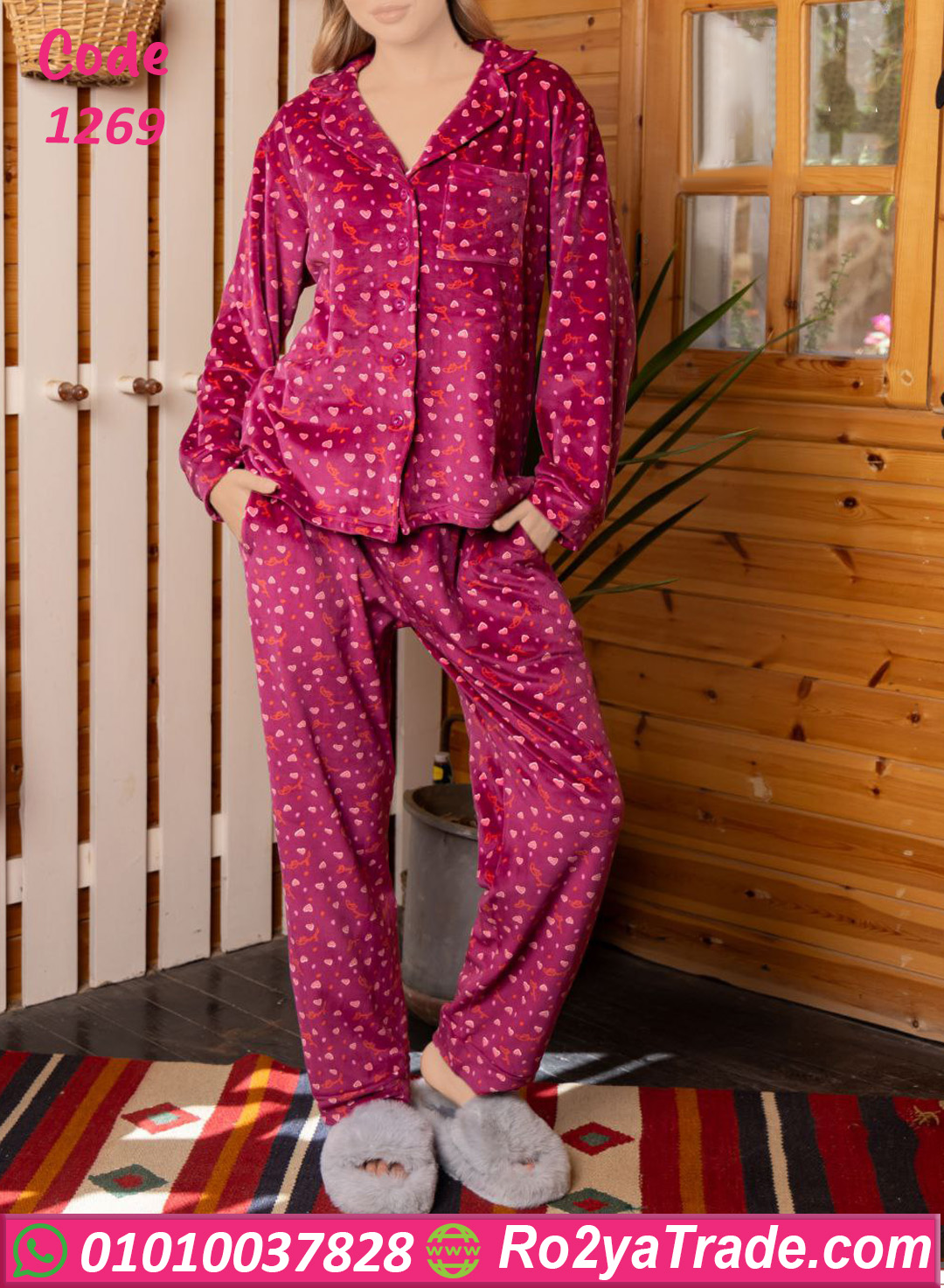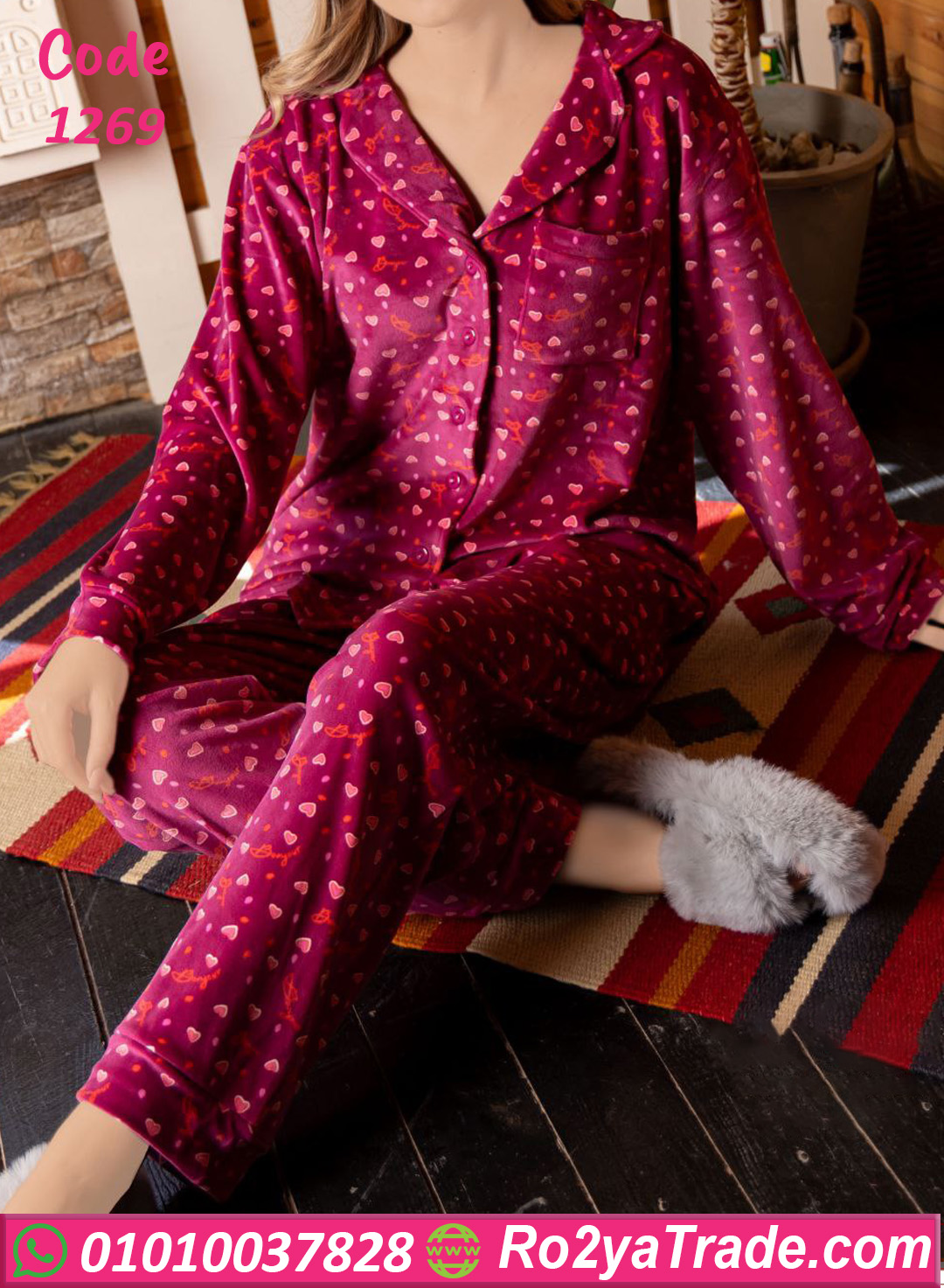 بيجامة شتوي قطيفة ناعمة جدًا بملمس مريح على البشرة 👌