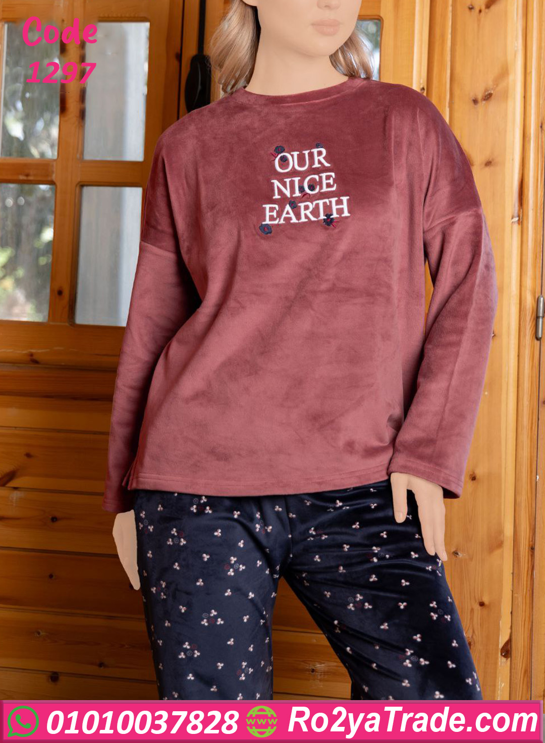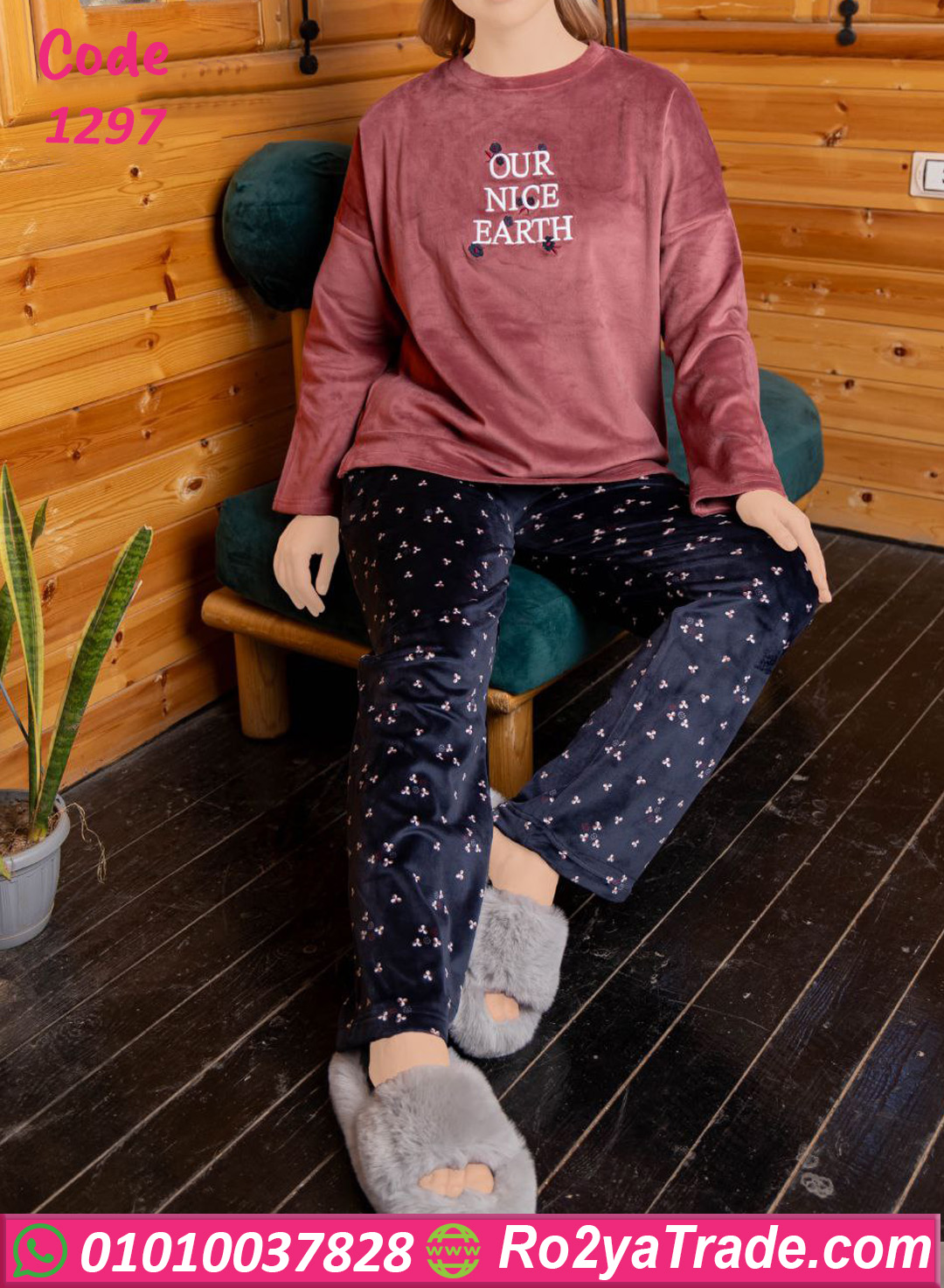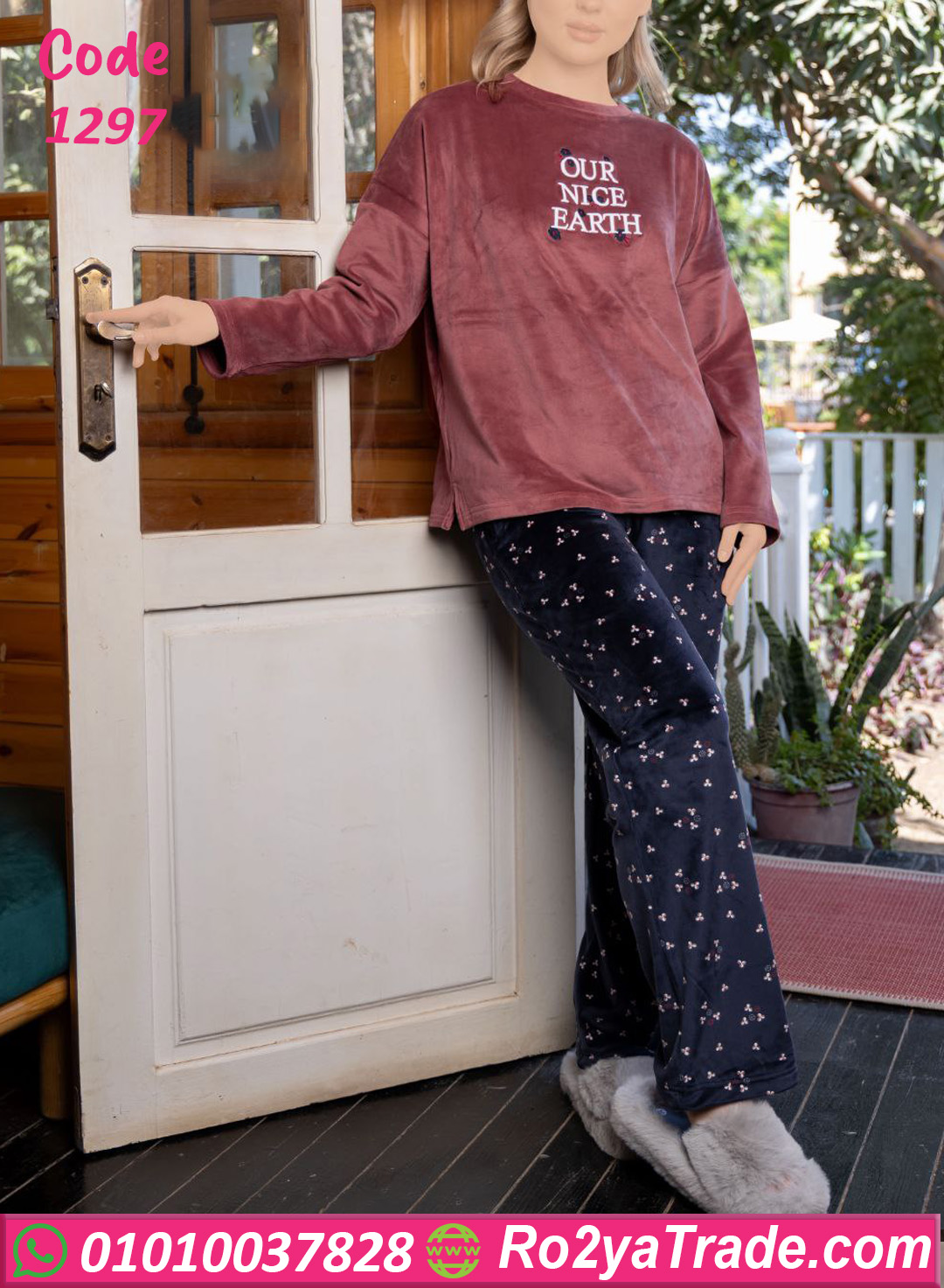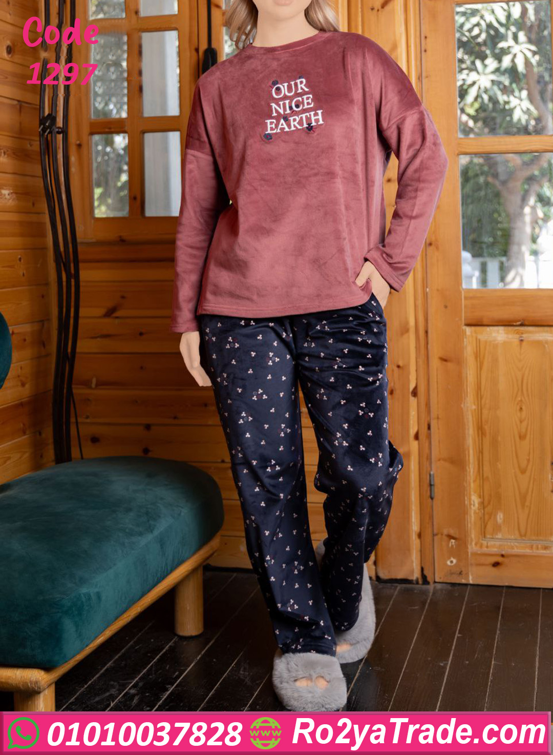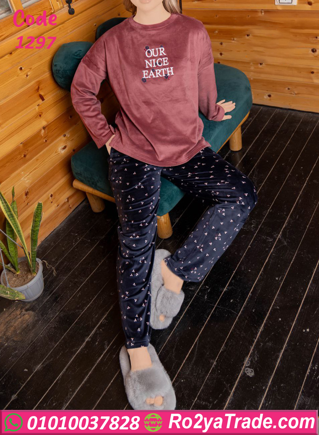 بيجامة قطيفة شتوي ناعمة جدًا على الجسم ومناسبة للبس اليومي في البيت 👌