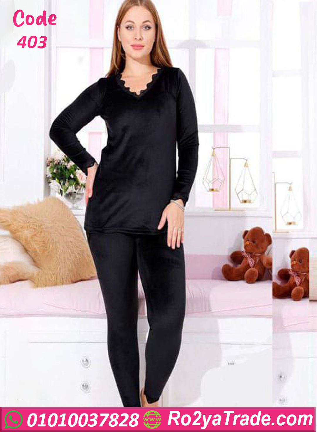 بيجامة قطيفة ناعمة ودافئة للمشاوير البيتية والمزاج الشتوي، خامة تقيلة ومريحة ومناسبة للبس يومي.