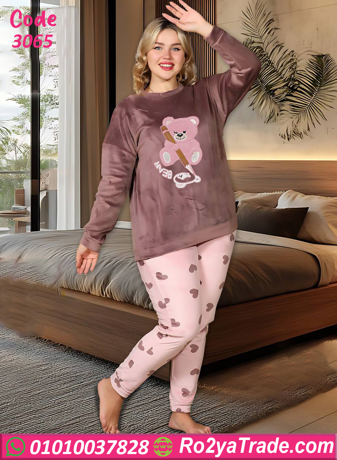 بيجامة قطيفة مطرزة بدبدوب كيوت – كود 3065