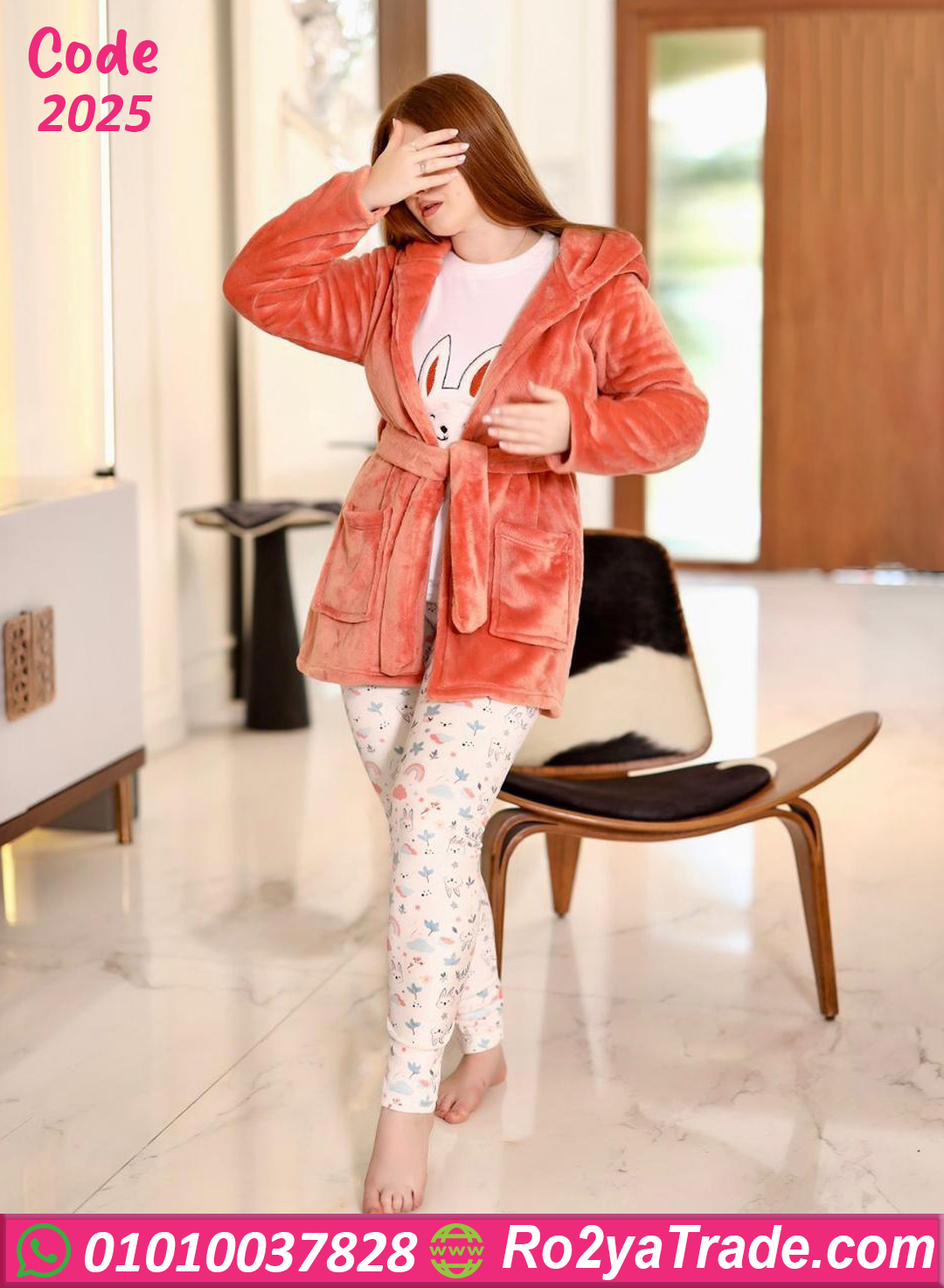 بيجامة قطيفة ناعمة بالروب هودي – كود 2025