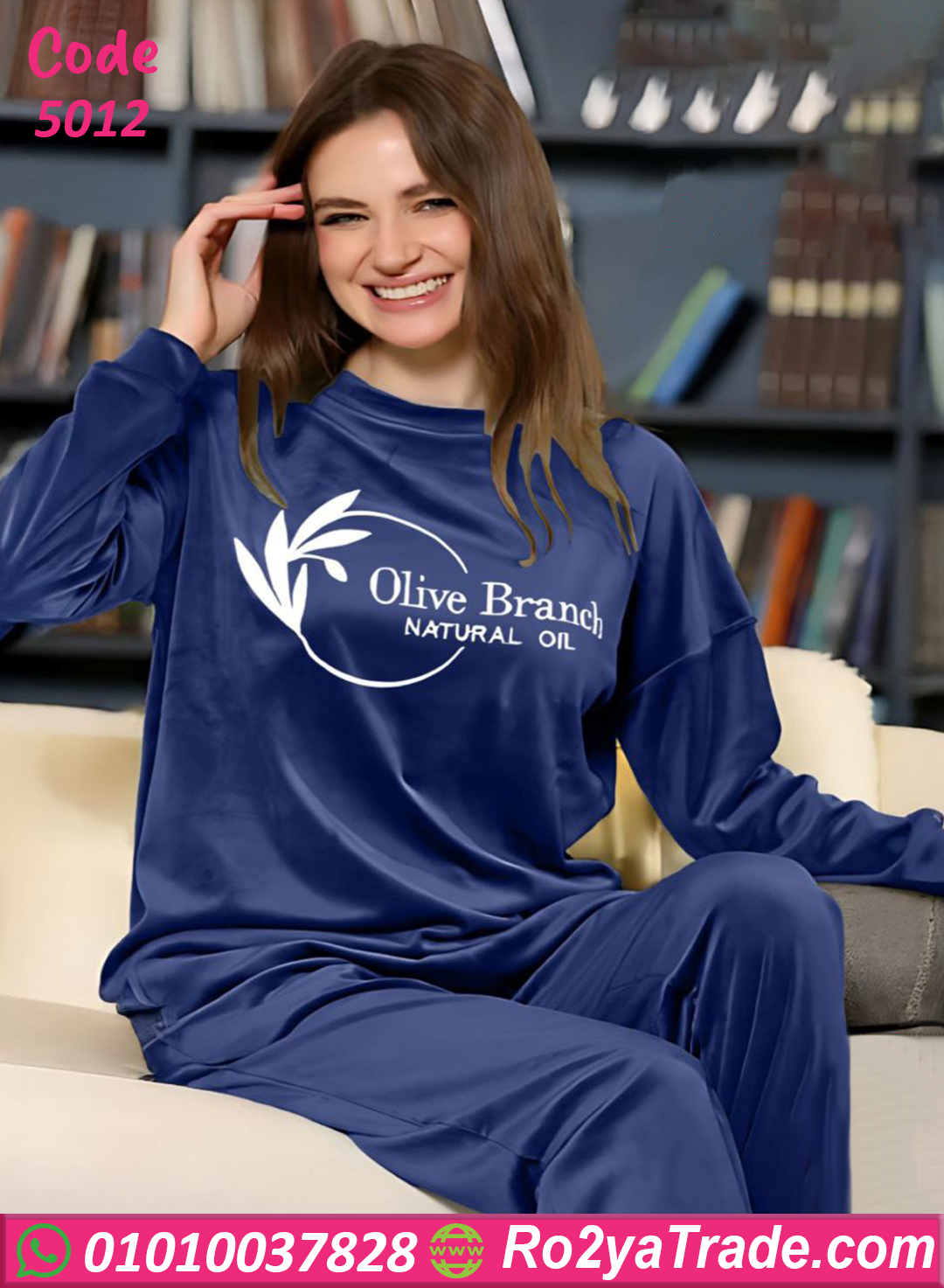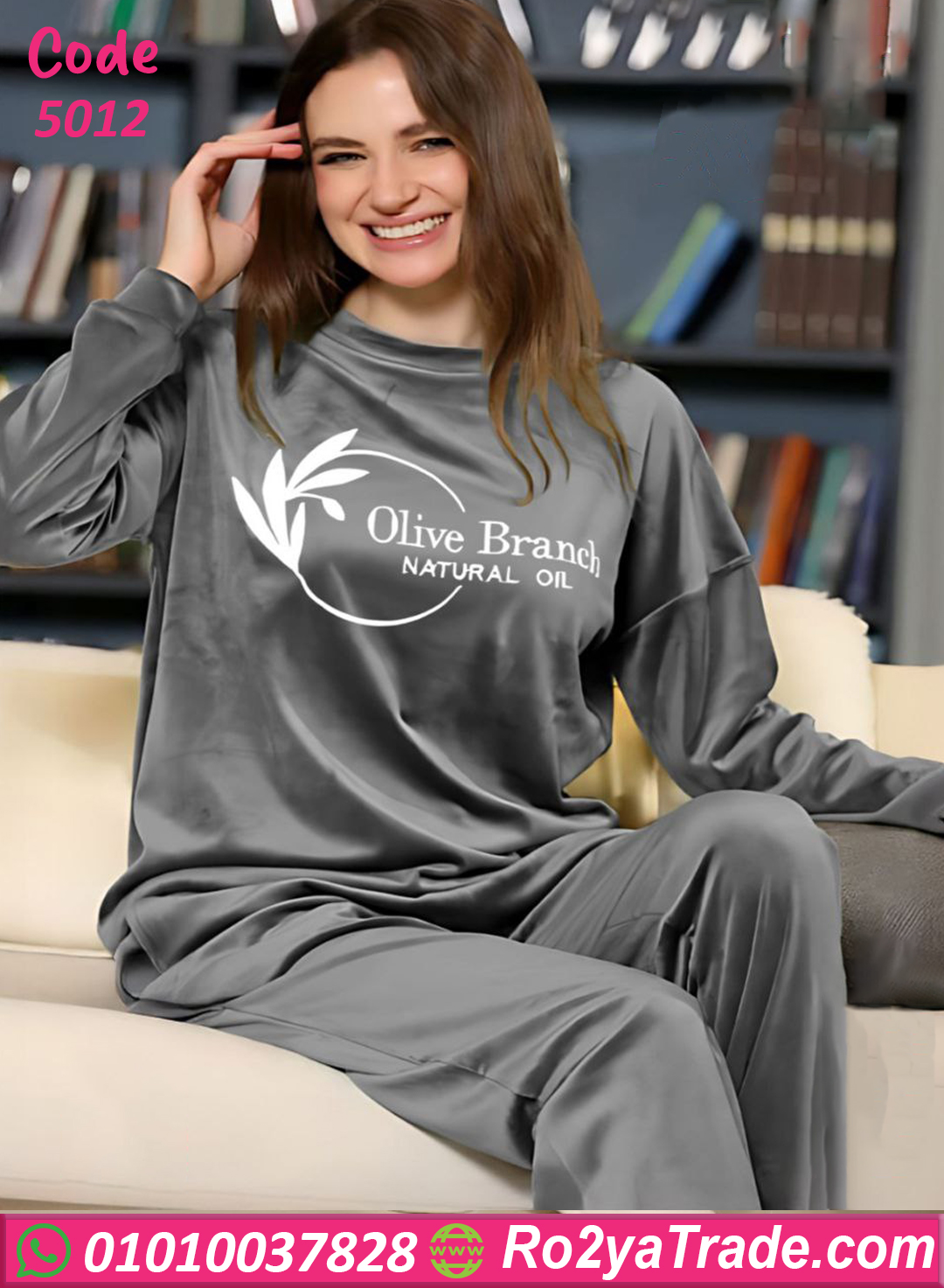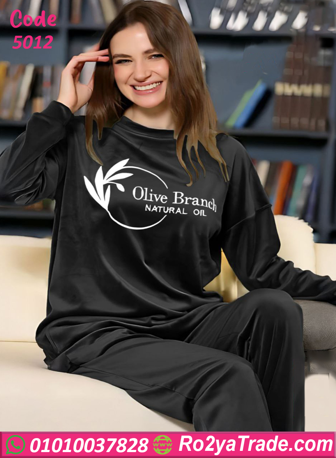 بيجامة شتوي قطيفة ناعمة بتصميم شيك ومريح، فيها لمسة فخامة بطبعة Olive Branch الأنيقة 🌿