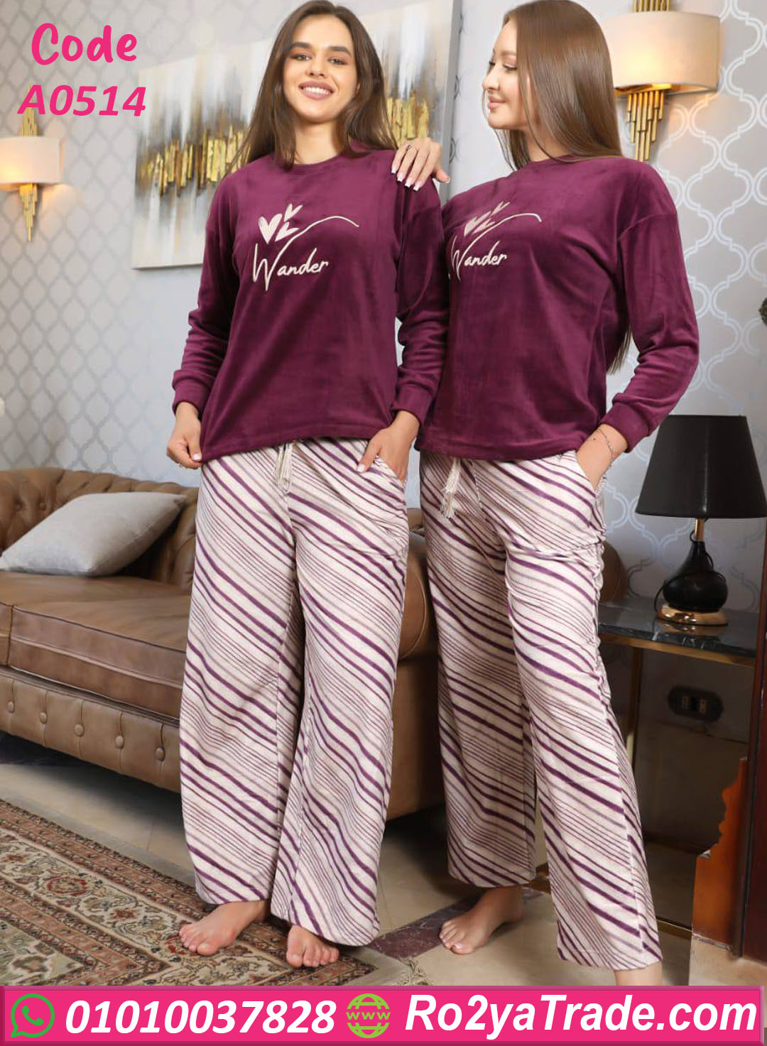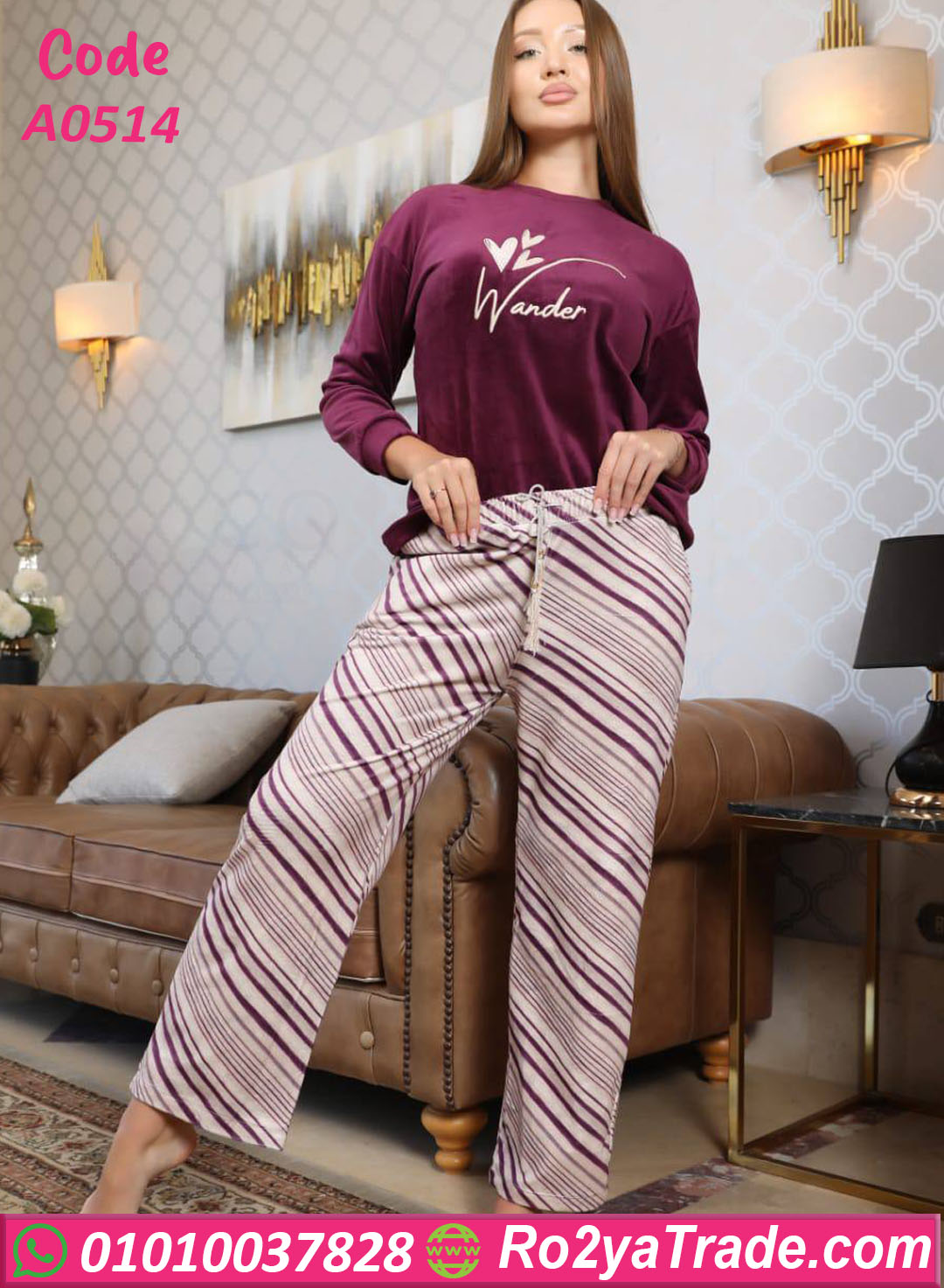 بيجامة قطيفة شتوي حريمي – كود 20001