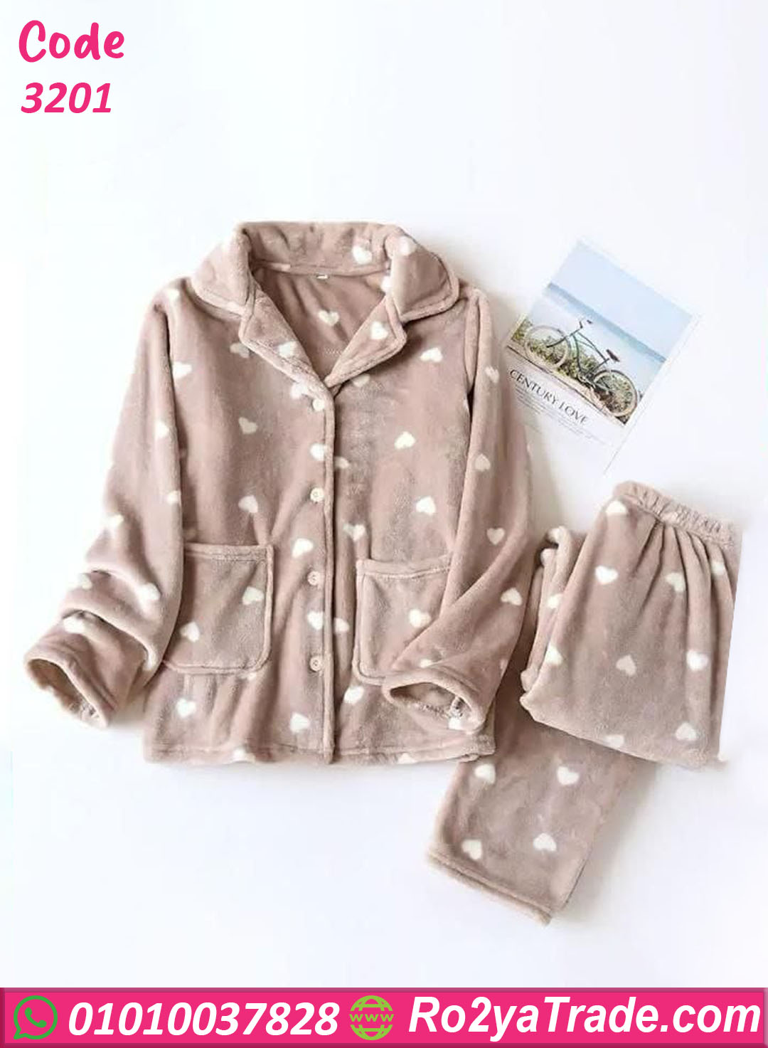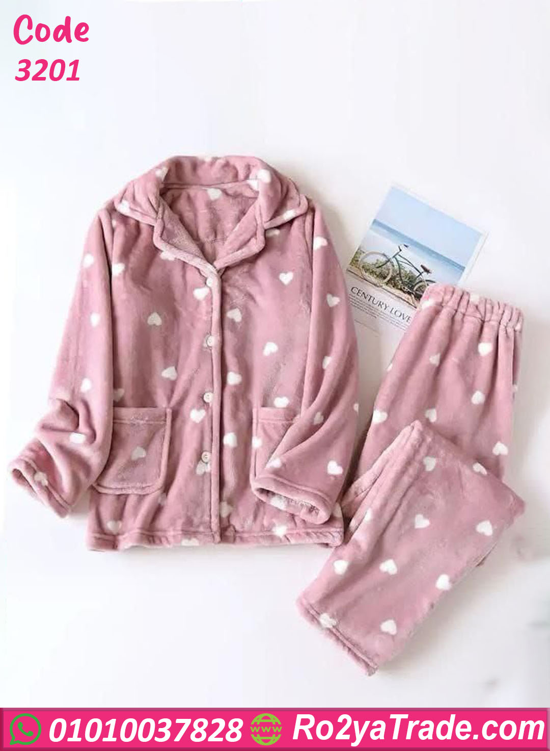 بيجامة قلوب قطيفة شتوي – كود 3201