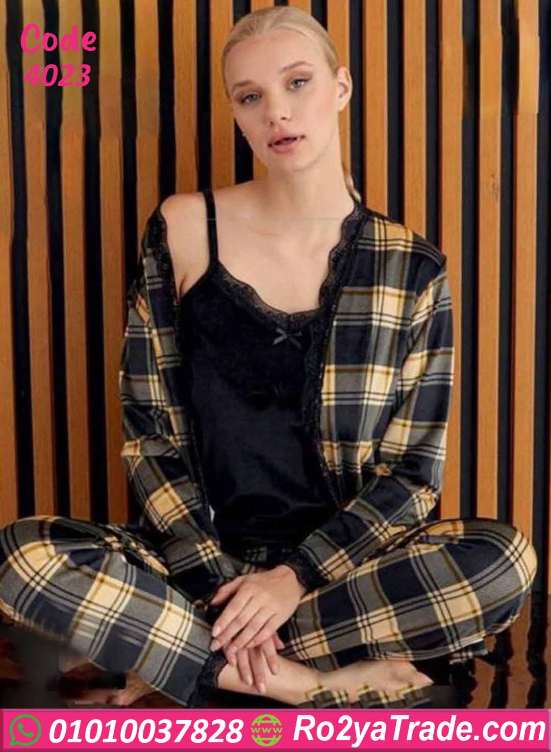 اطلبي الآن بيجامة كاروهات شتوي 3 قطع كود 4023 بأفضل سعر