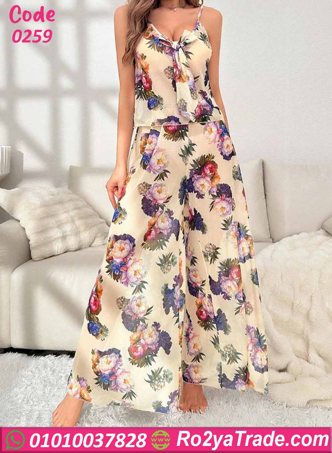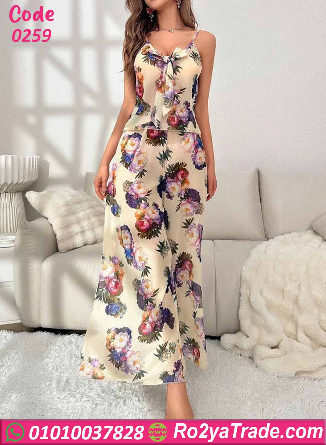 بيجامة نسائية صيفي بنقشة ورد أنيقة – كود 0259