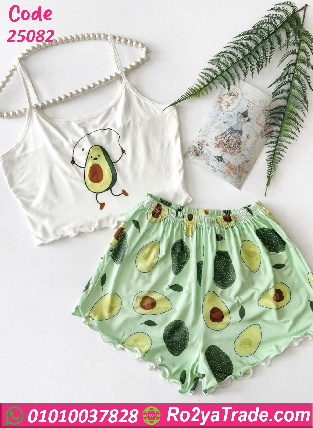 بيجامة هوت شورت حريمي صيفي بطبعة أفوكادو كيوت – كود 25082