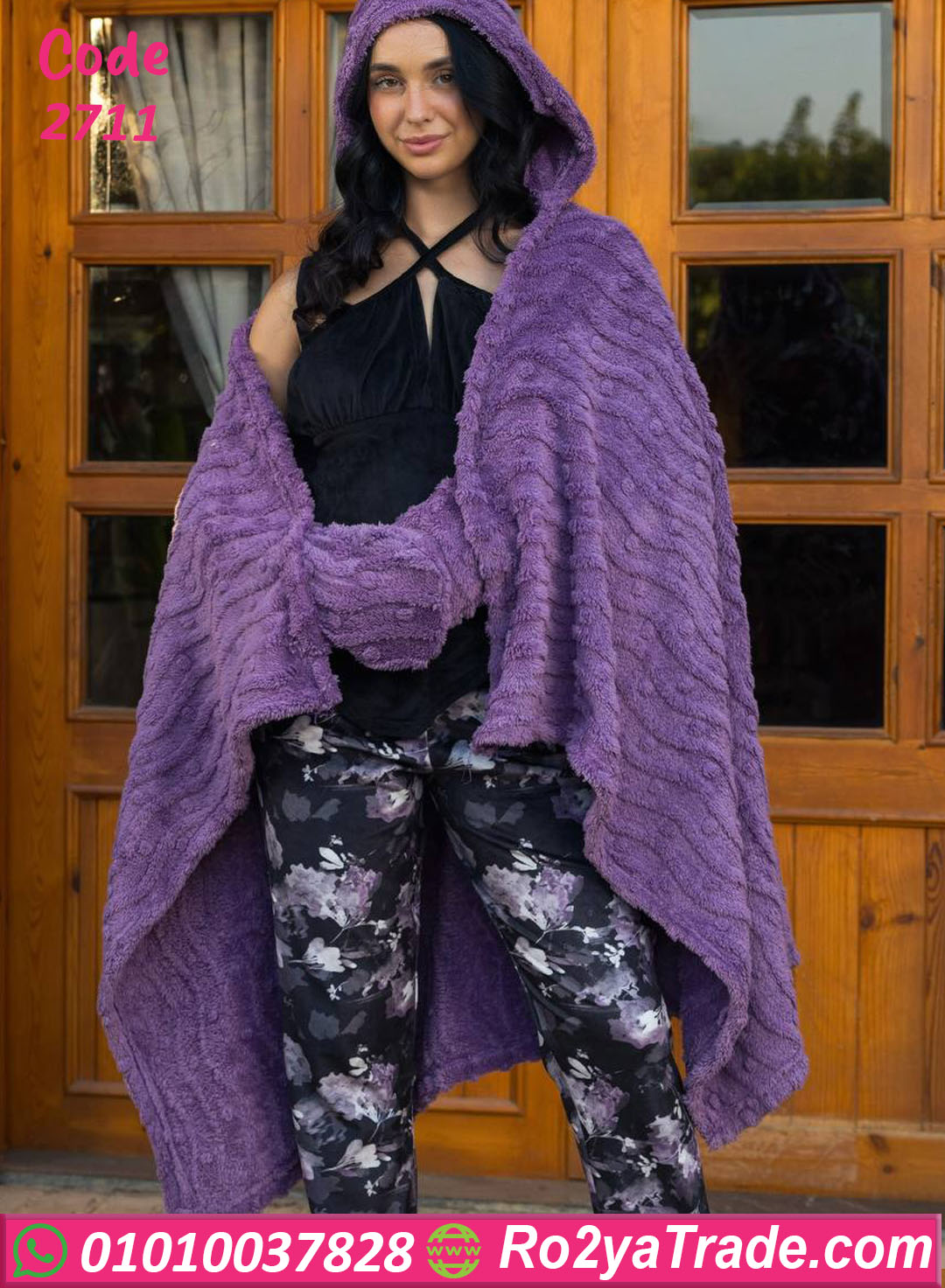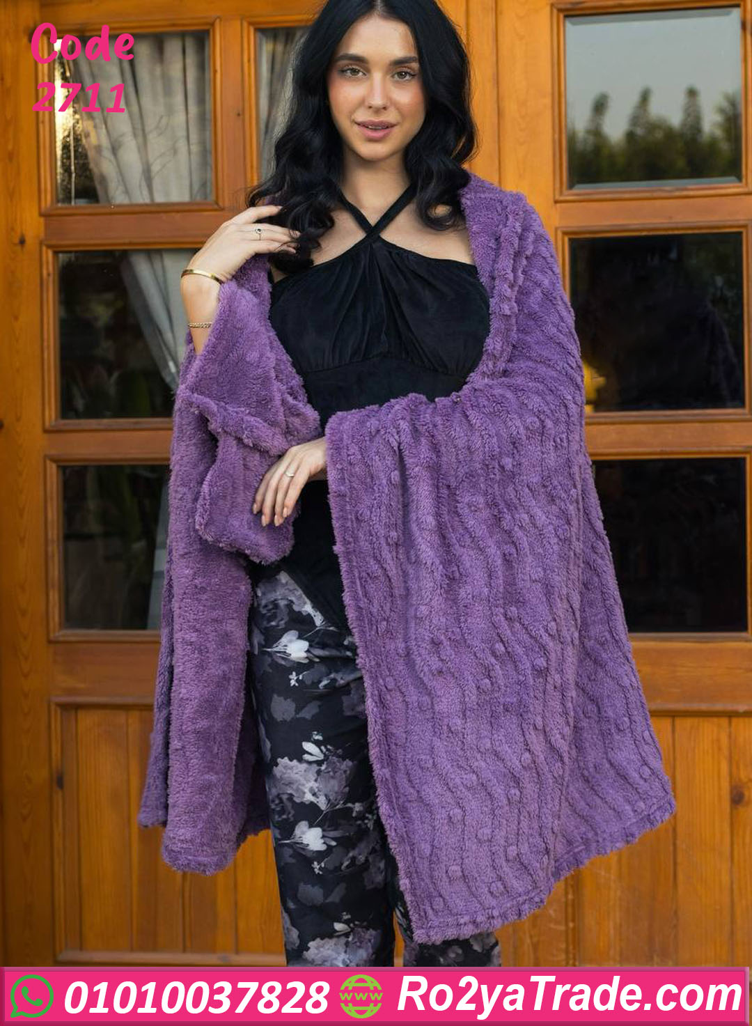 روب شتوي فرو ناعم جدا من خامة ثقيلة، بكابيشو عملي ولونين جذابين (نبيتي – موف)، مناسب للدفا والأناقة في نفس الوقت.