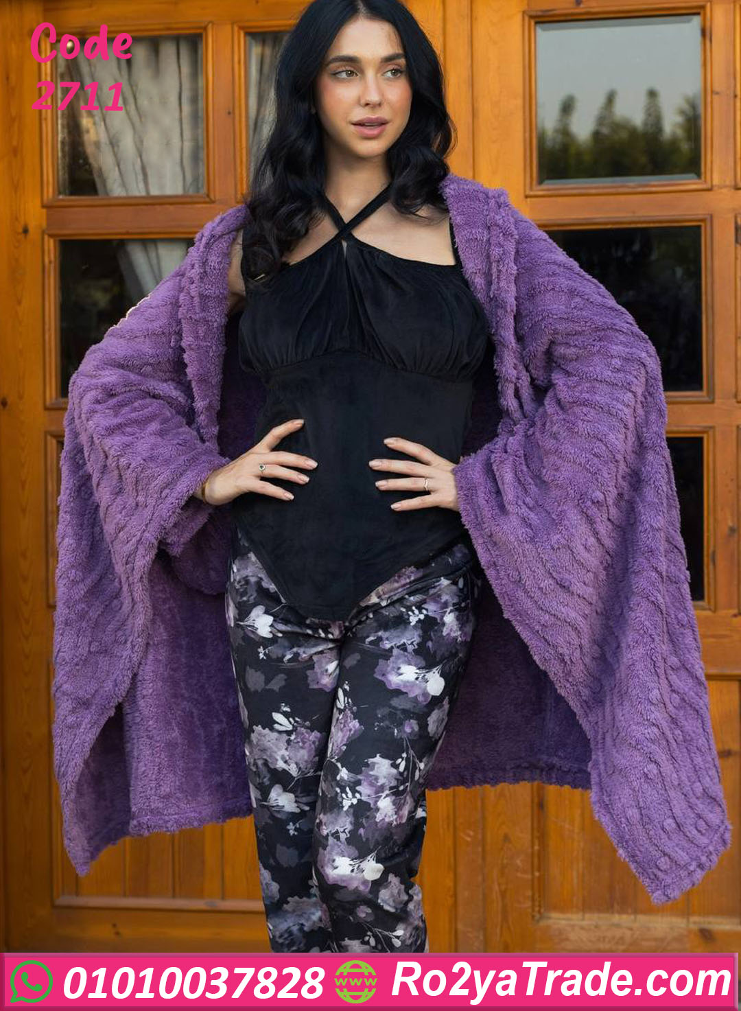 متوفر بلونين من أجمل الألوان: موف أنثوي ناعم ونبيتي جرئ كلاسيكي، وسهل التنسيق مع بيجامات أو أطقم بيت شتوية.