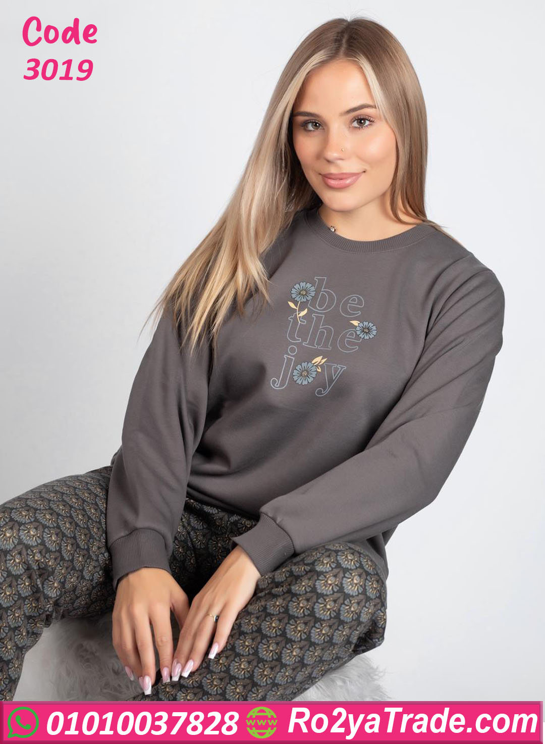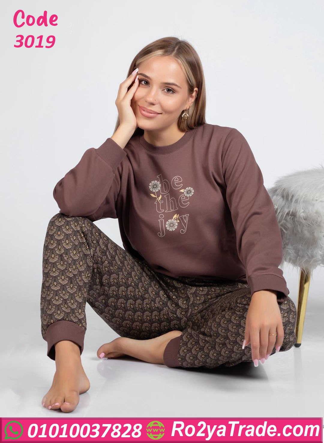 بيچامة حريمي دافئة بنقشة ورد – كود 3019 🌸