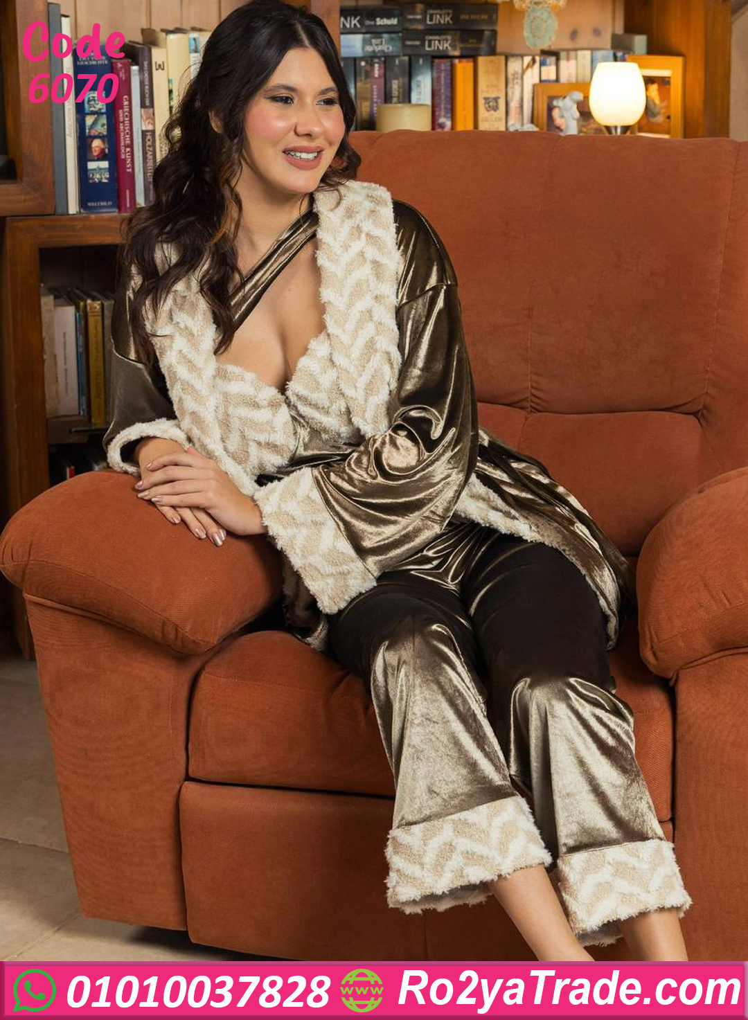 بيچامة شتوي قطيفة فخمة – كود 6070