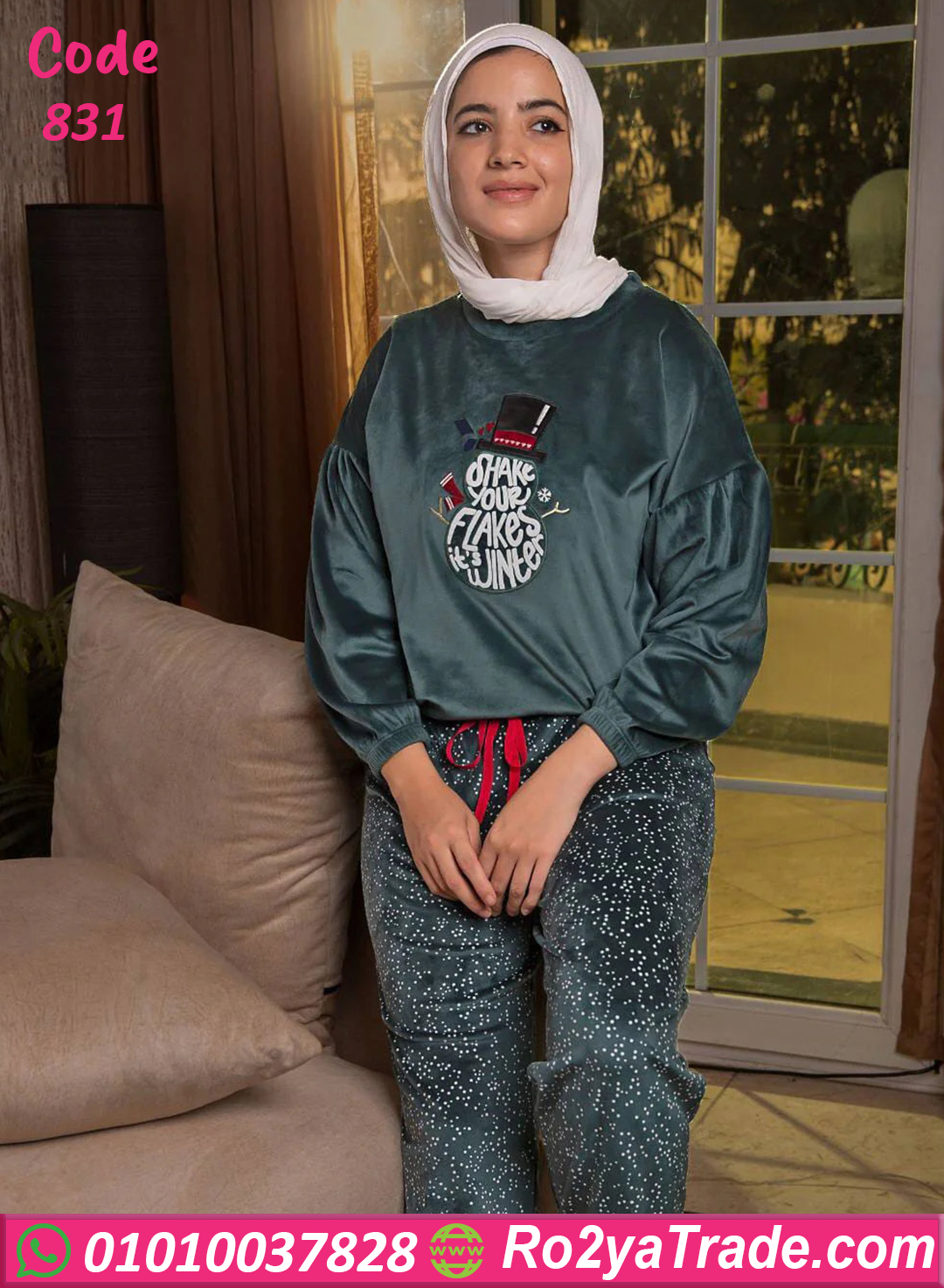 بيچامة شتوي قطيفة ناعمة بلون زيتي – كود 831
