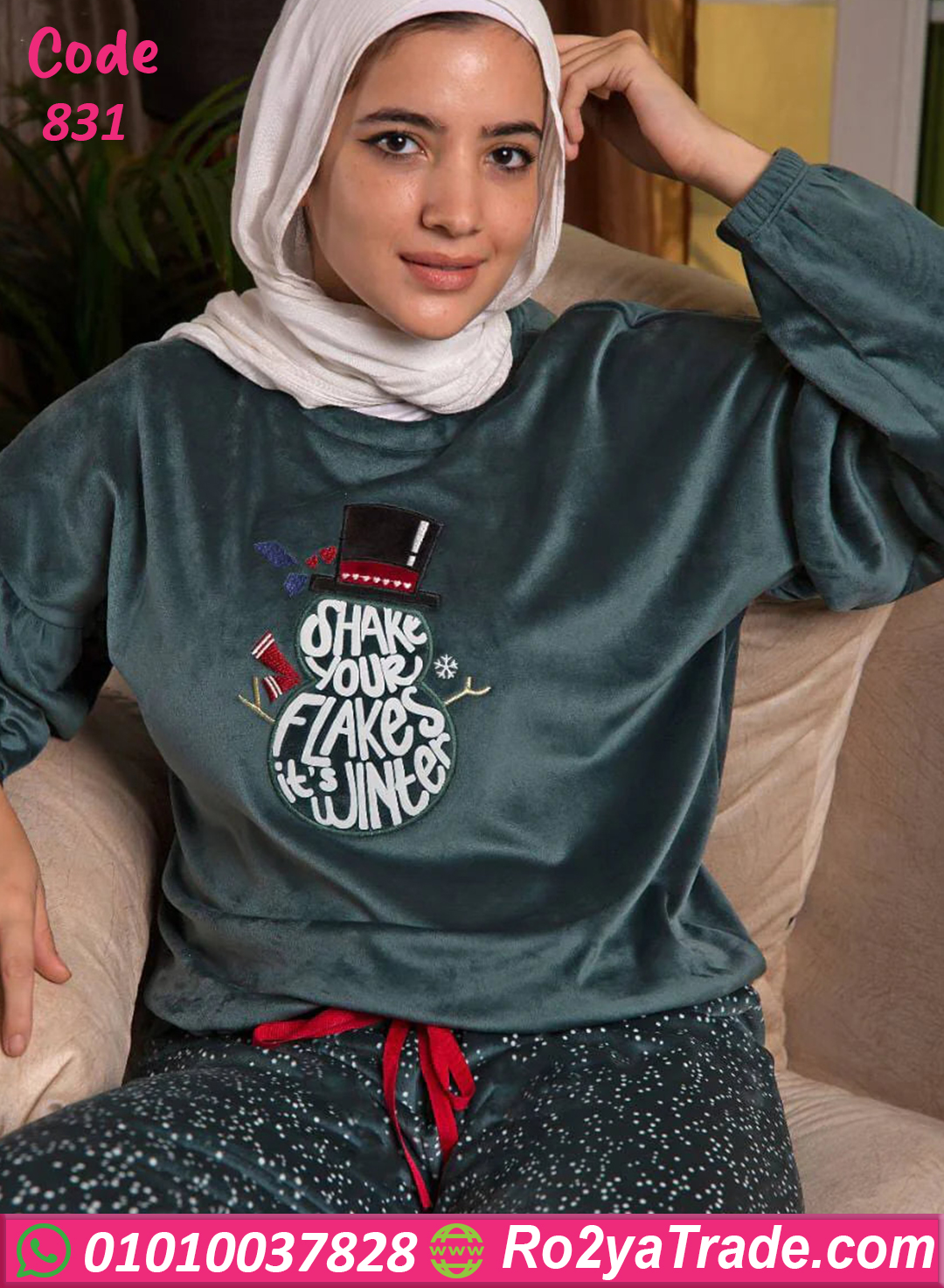 بيچامة شتوي قطيفة ناعمة تخطف القلب 💚