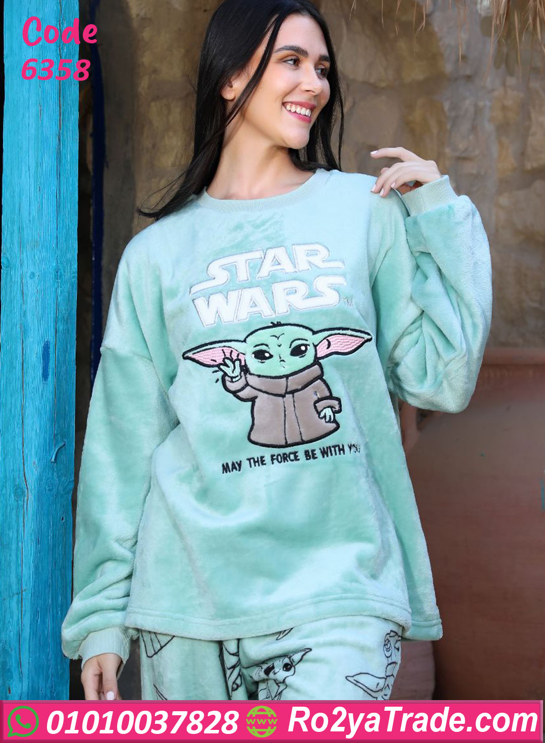 بيچامة شتوي تحفة بخامة قطيفة ناعمة مطبوعة برسمة Star Wars المميزة 💚