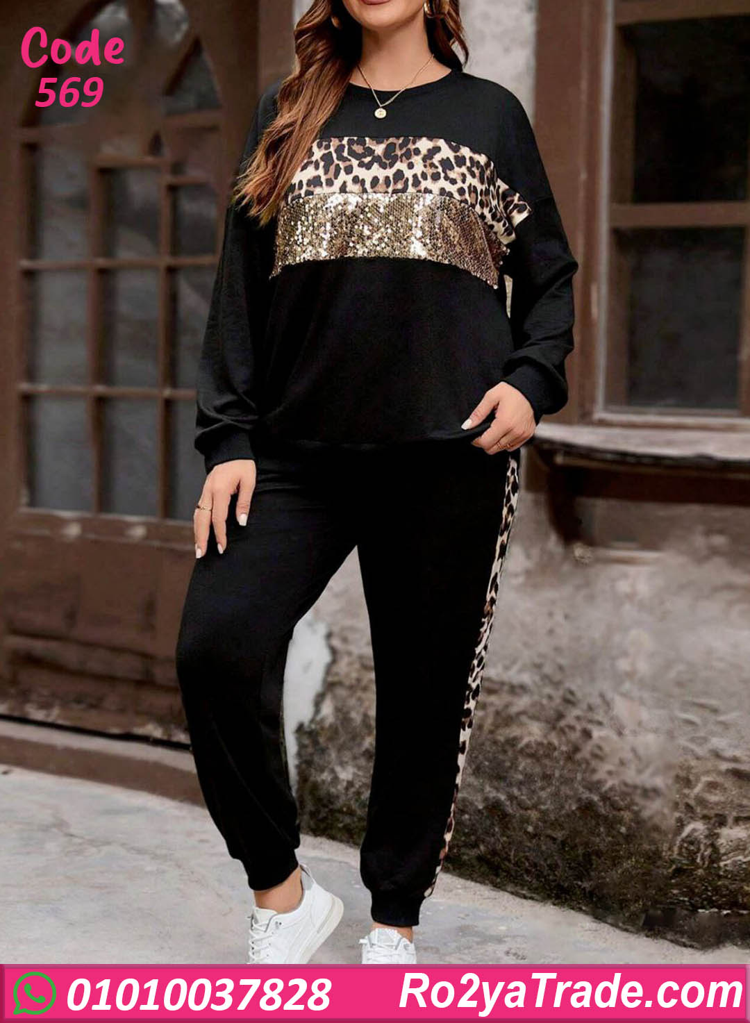 ترنج حريمي شتوي شيك وعملي، تصميم عصري بخامة مريحة جدًا تناسب اللبس اليومي والخروج الخفيف. الطقم مكوّن من بلوزة وبنطلون بتصميم مميز يجمع بين اللون السادة ونقشة التايجر مع شريط لامع أنيق يدي شكل جذاب ومختلف.