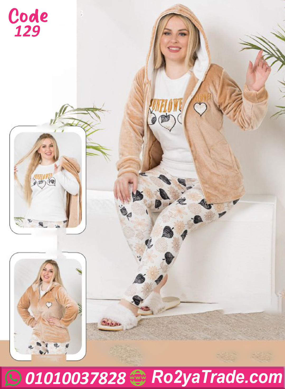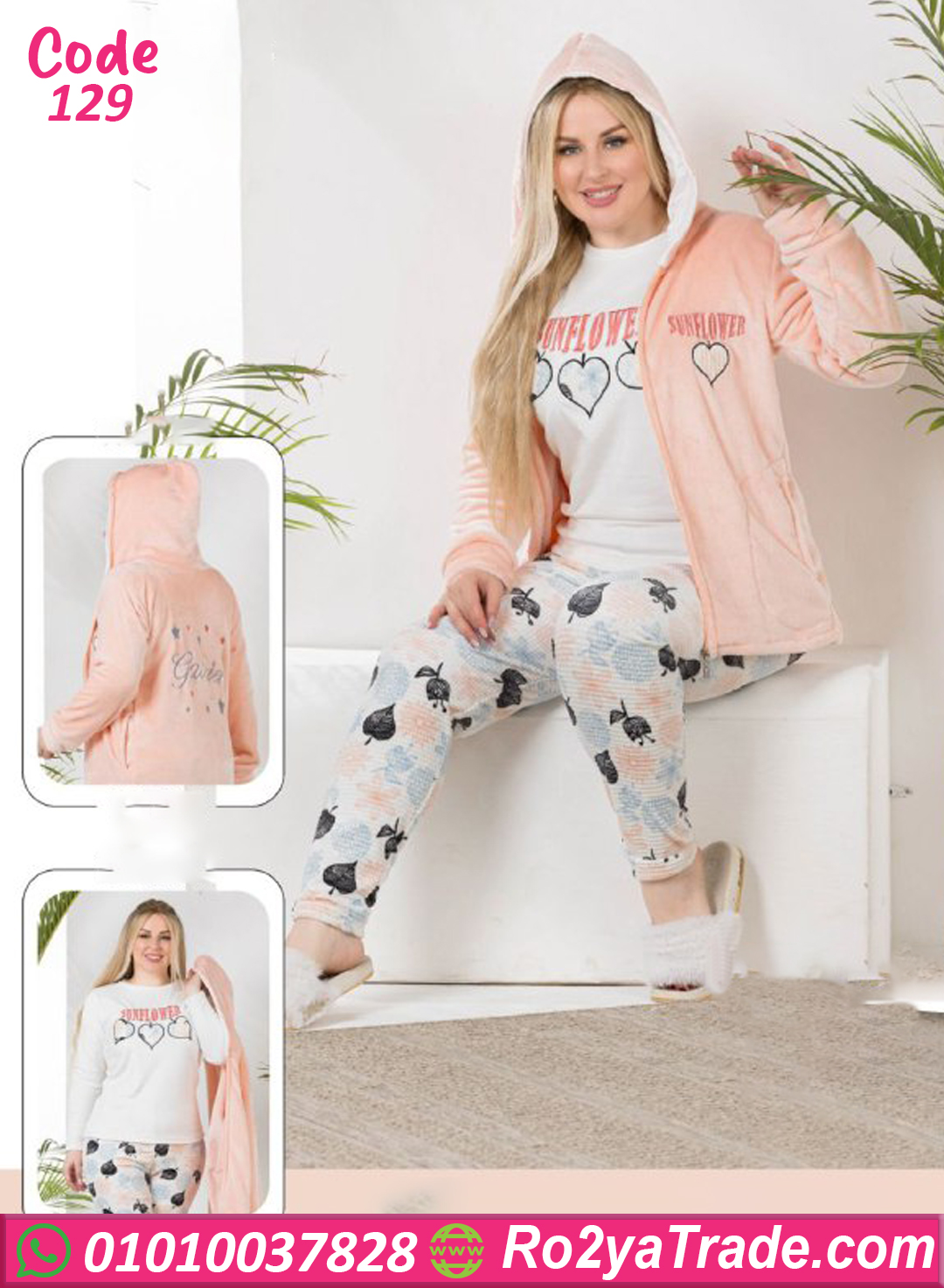 دلّعي نفسك بأجمل ترنج شتوي فرو من ماركة First Lady، تصميم شيك بستايل عملي مثالي للبيت، مصنوع من خامة فرو قطيفة ناعمة جدًا بتدي إحساس بالدفا والراحة في نفس الوقت. التيشيرت مطبوع برسمة قلوب أنيقة، والبنطلون منقوش برسومات هادية تضيف لمسة أنوثة. الترنج مثالي للبنات والسيدات اللي بيحبوا الجمع بين الأناقة والدفا في الشتاء، وسهل التنسيق مع شبشب بيت أو بوت ناعم. مناسب جدًا لأوقات الاسترخاء أو الجلوس في البيت بستايل راقي ومريح. لو بتدوري على ترنج فرو شتوي عملي وفي نفس الوقت شكله جذاب، الموديل ده هو اختيارك المثالي.